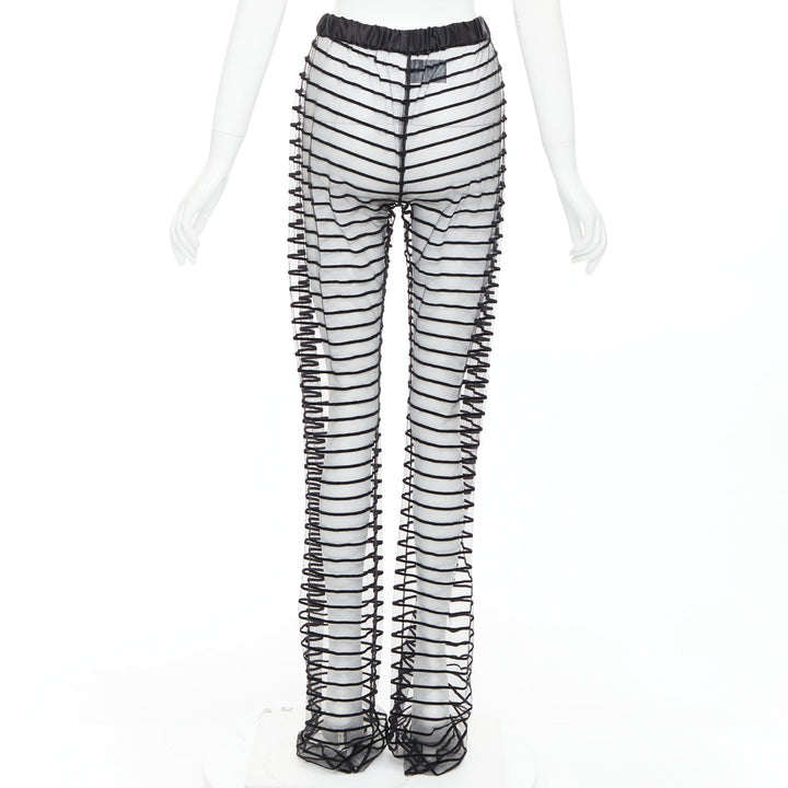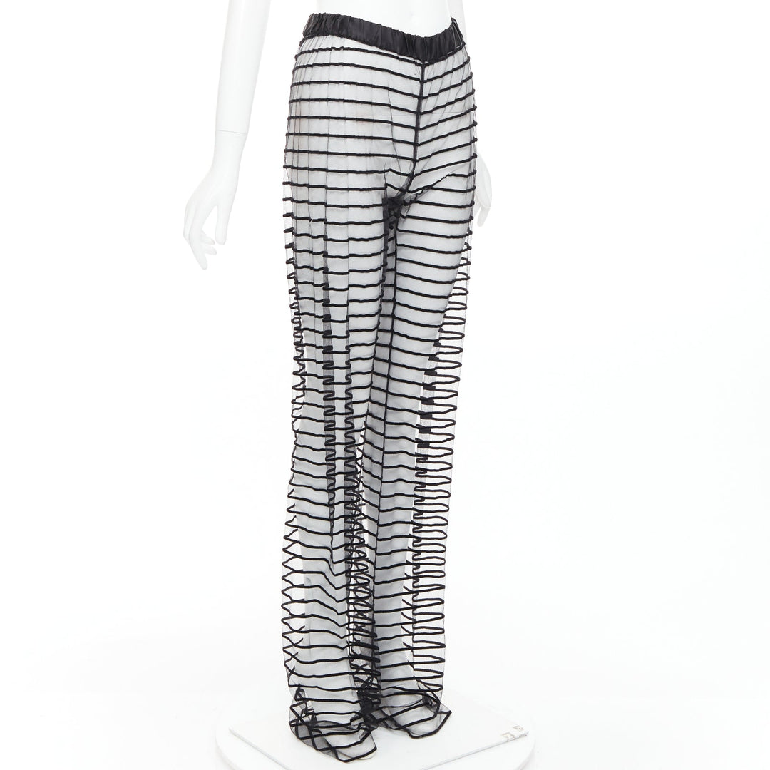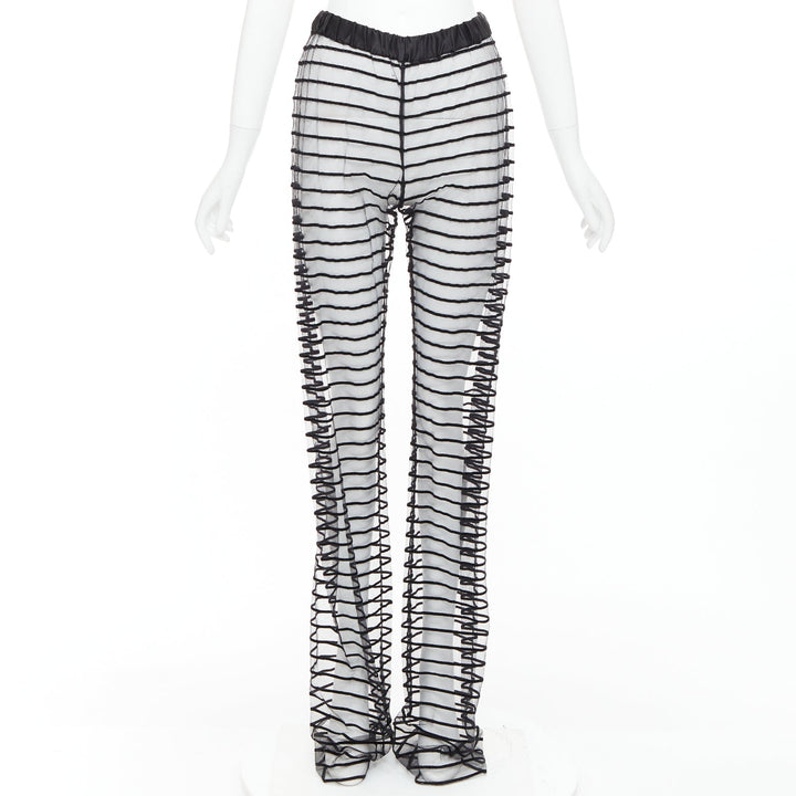 DRIES VAN NOTEN black flocked mesh striped sheer straight leg pants FR34 XS