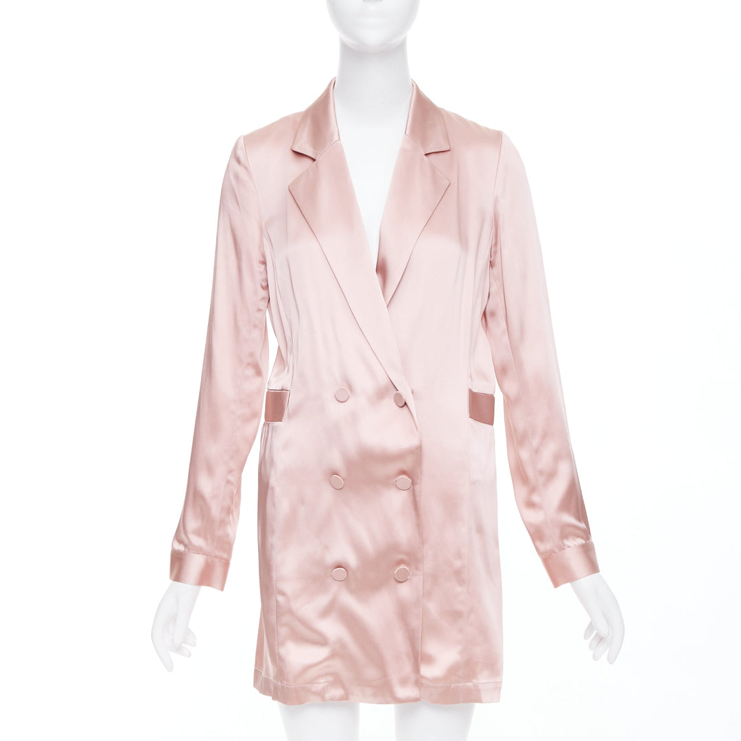 FLEUR DU MAL pink silky double breasted pocketed longline blazer coat US0 XS