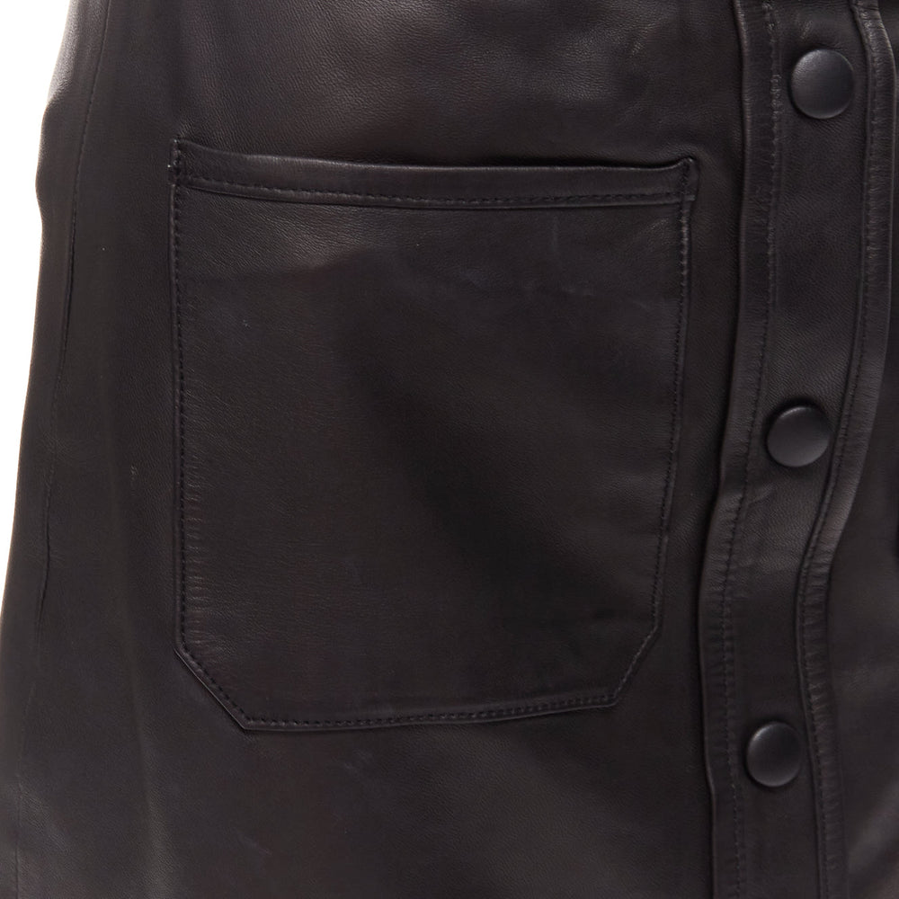 FRAME black lambskin leather snap button patch pocket mini skirt 25"