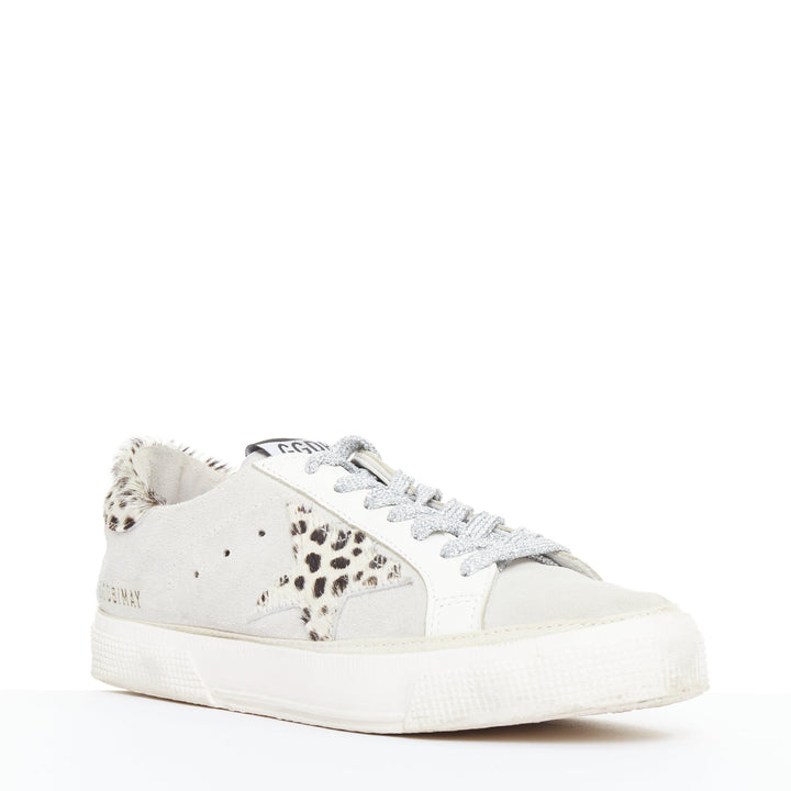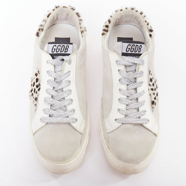 GOLDEN GOOSE Vstar2 metallic silver leather zebra star distressed sneakers EU36