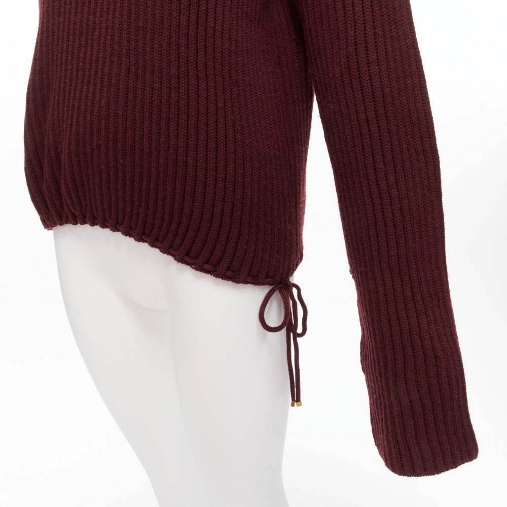 GUCCI 100% wool burgundy brown tie side drop sleeve turtleneck jumper IT38 XS
