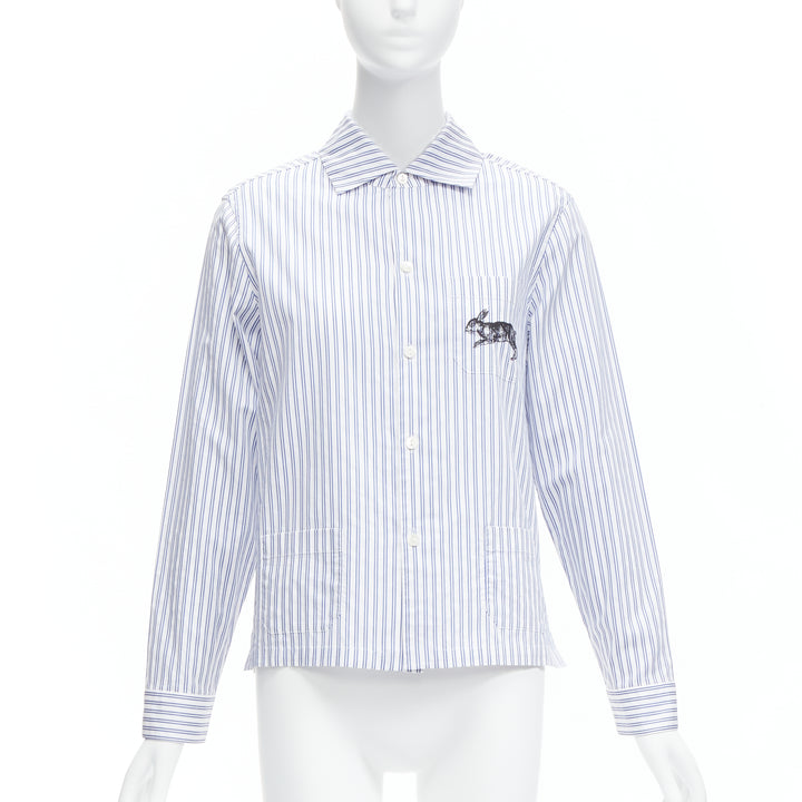 GUCCI 2017 rabbit print blue white striped cotton pyjama dress shirt IT44 L