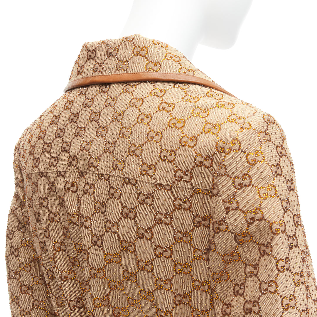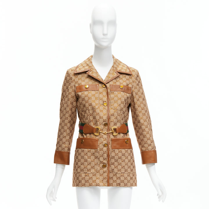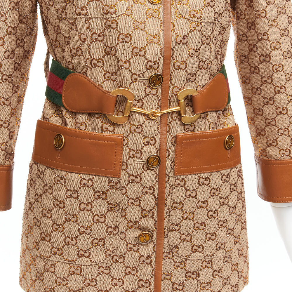GUCCI 2022 Aria crystal embellished Horsebit web belt GG canvas jacket IT38 XS
