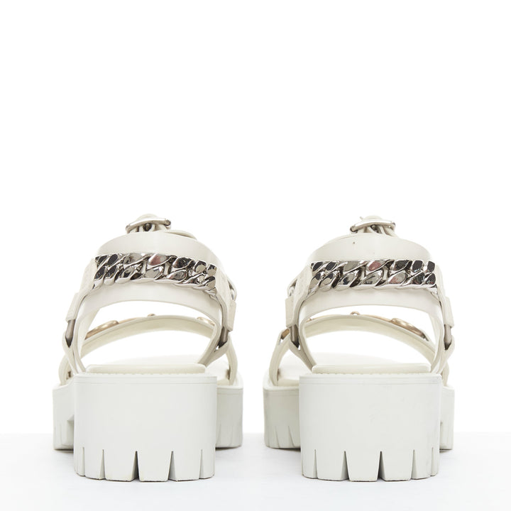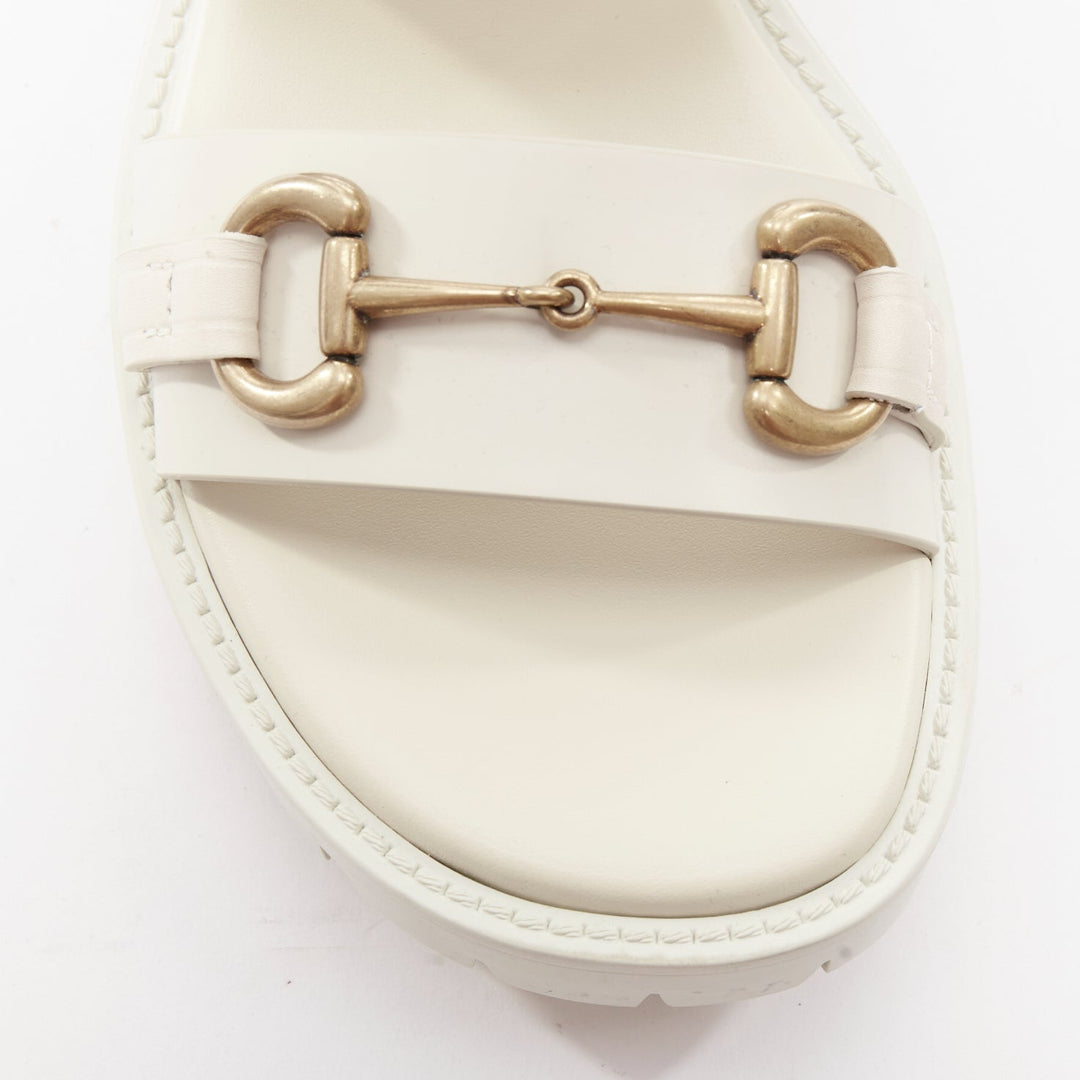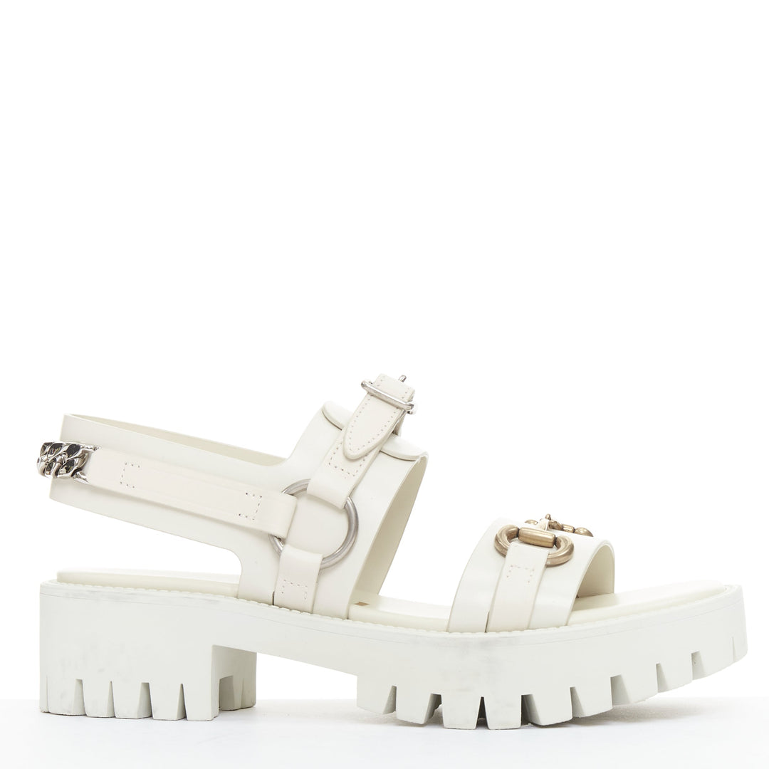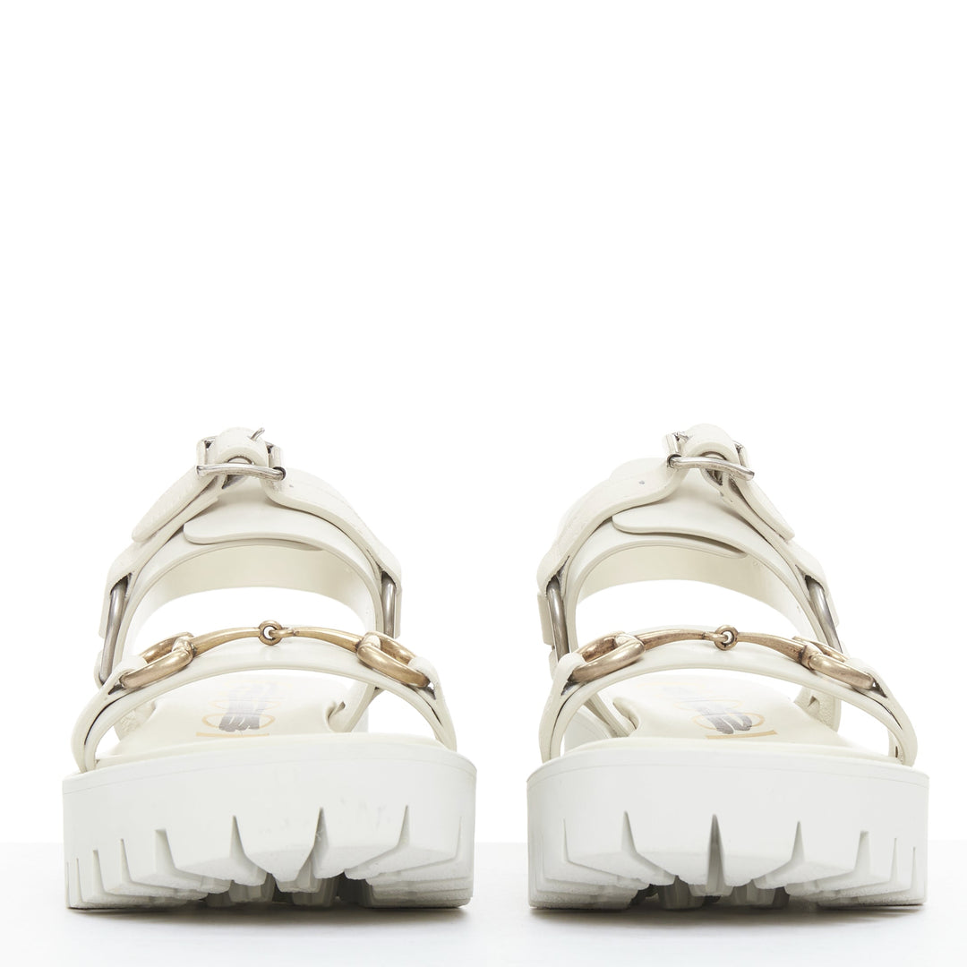 GUCCI Bria mystic white calf horsebit lug sole dad sandals EU37