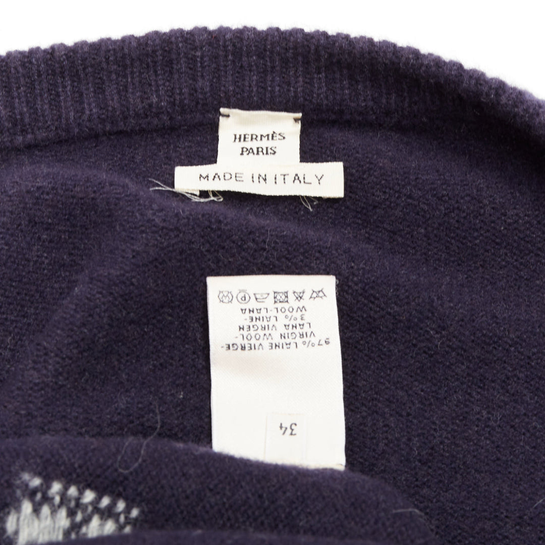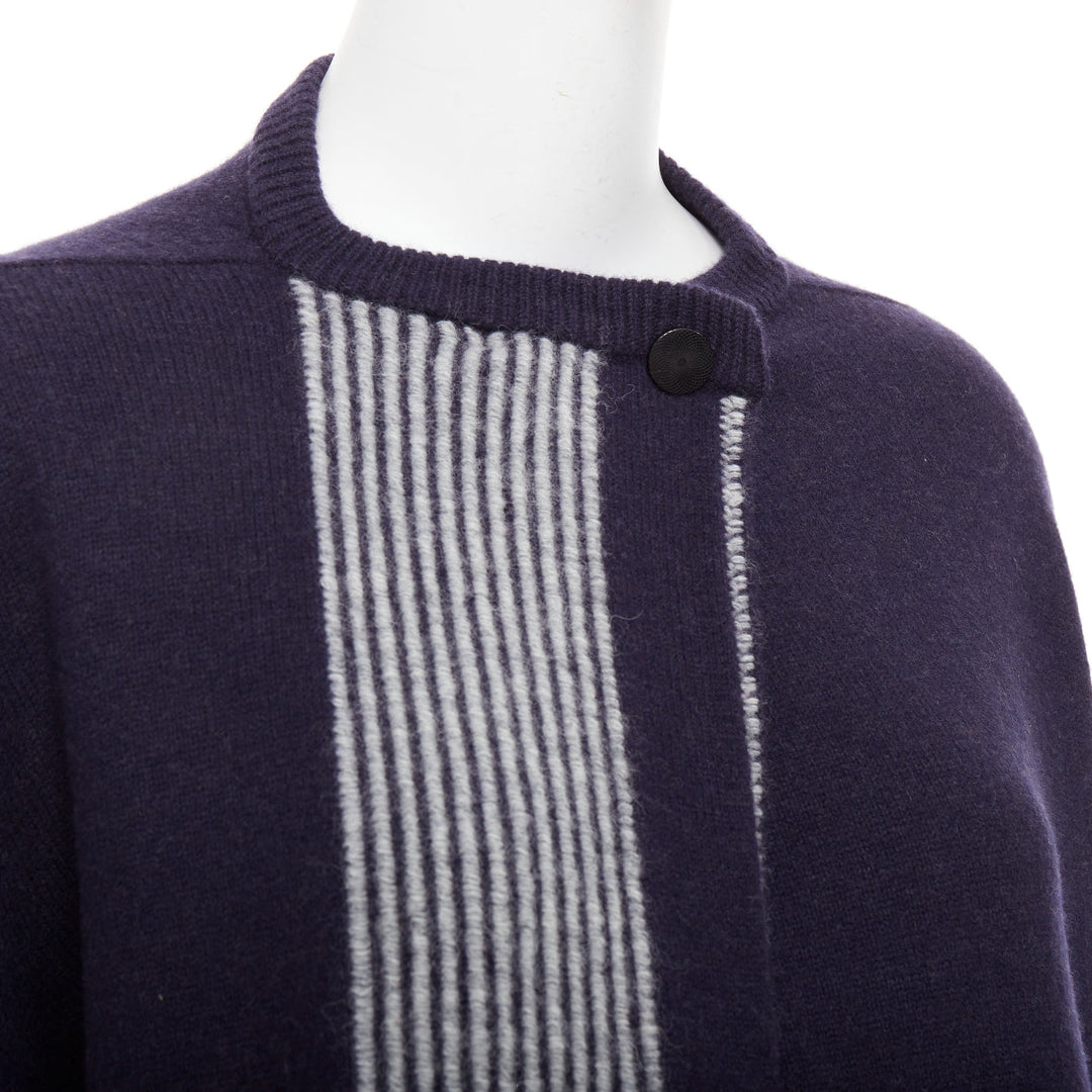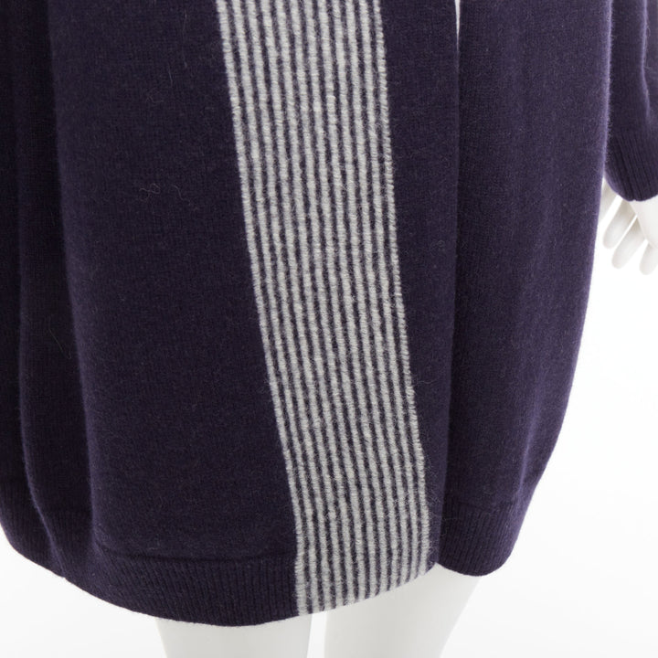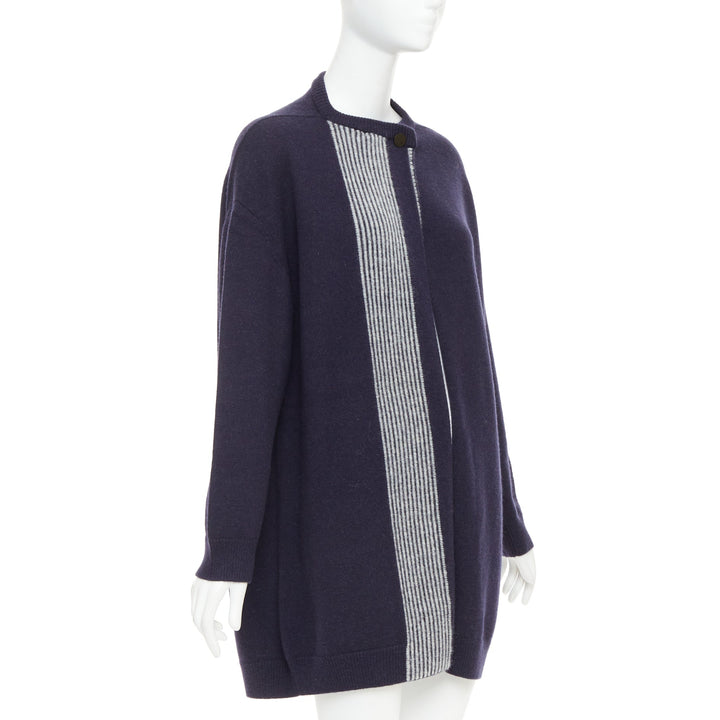 HERMES navy virgin wool white striped oversized knitted cardigan sweater FR34 XS