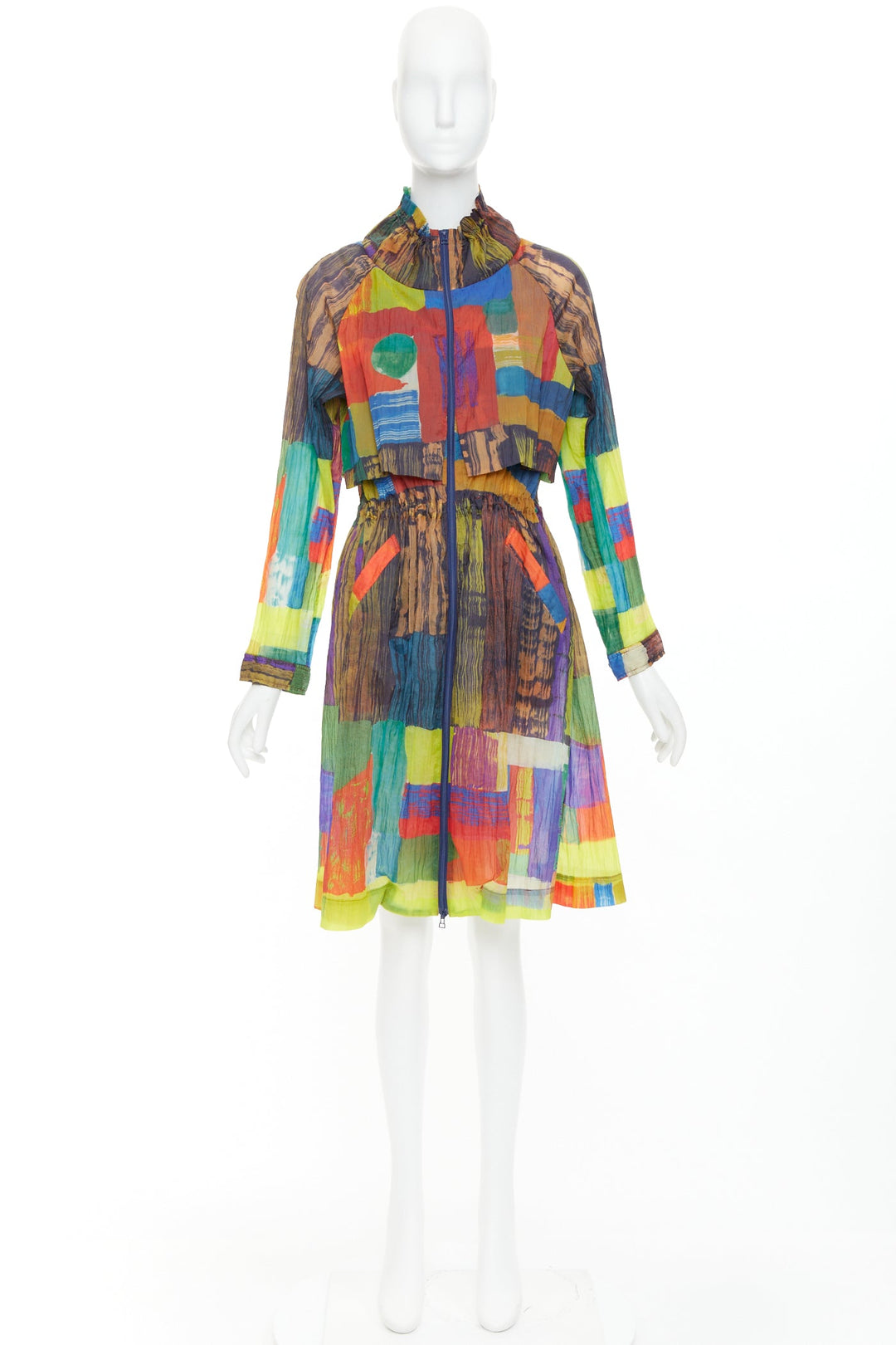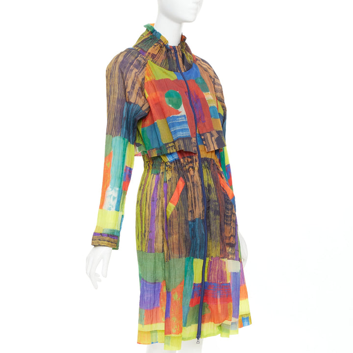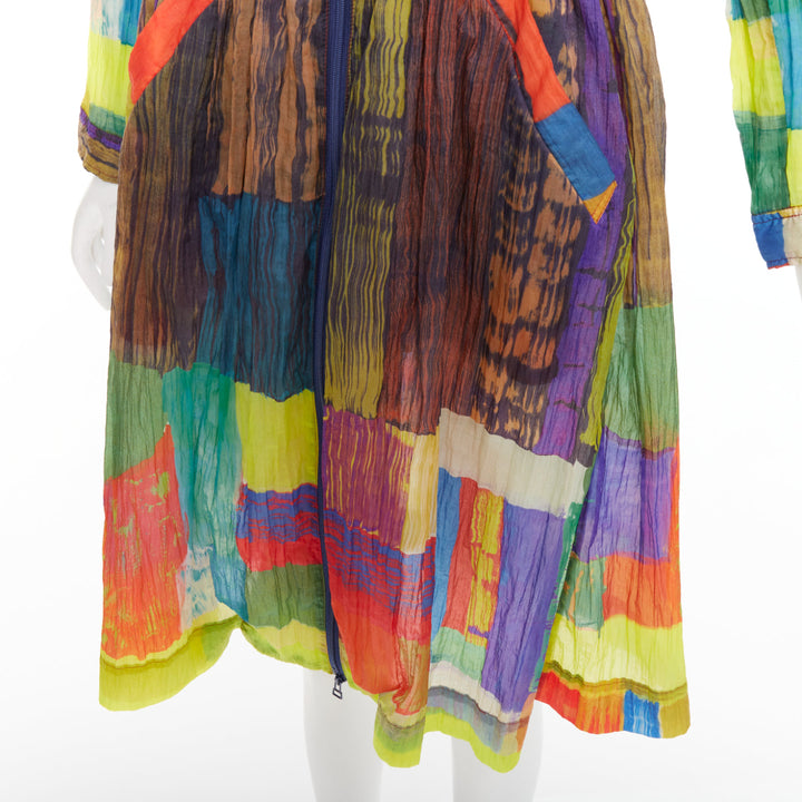 ISSEY MIYAKE multicolor rainbow geometric printed pleated coat dress JP2 M