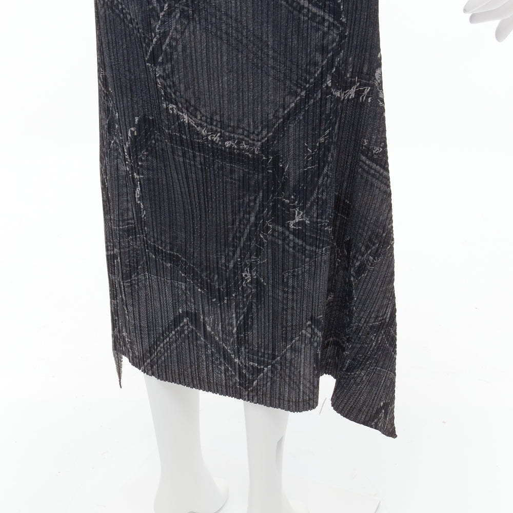 ISSEY MIYAKE PLEATS PLEASE dark blue denim patchwork print pleated skirt JP2 M