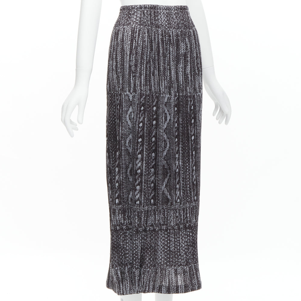 ISSEY MIYAKE PLEATS PLEASE grey black cable knit print pleated midi skirt JP2 M