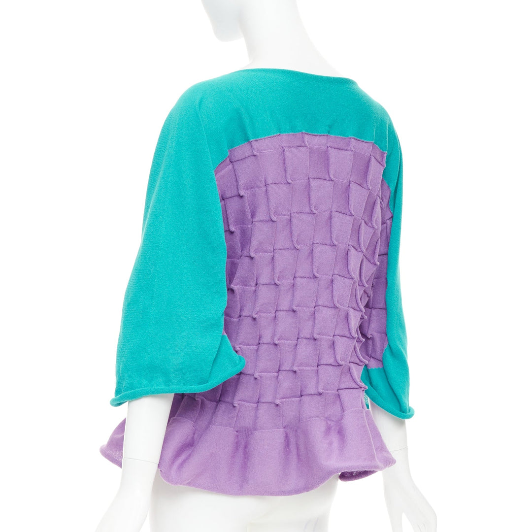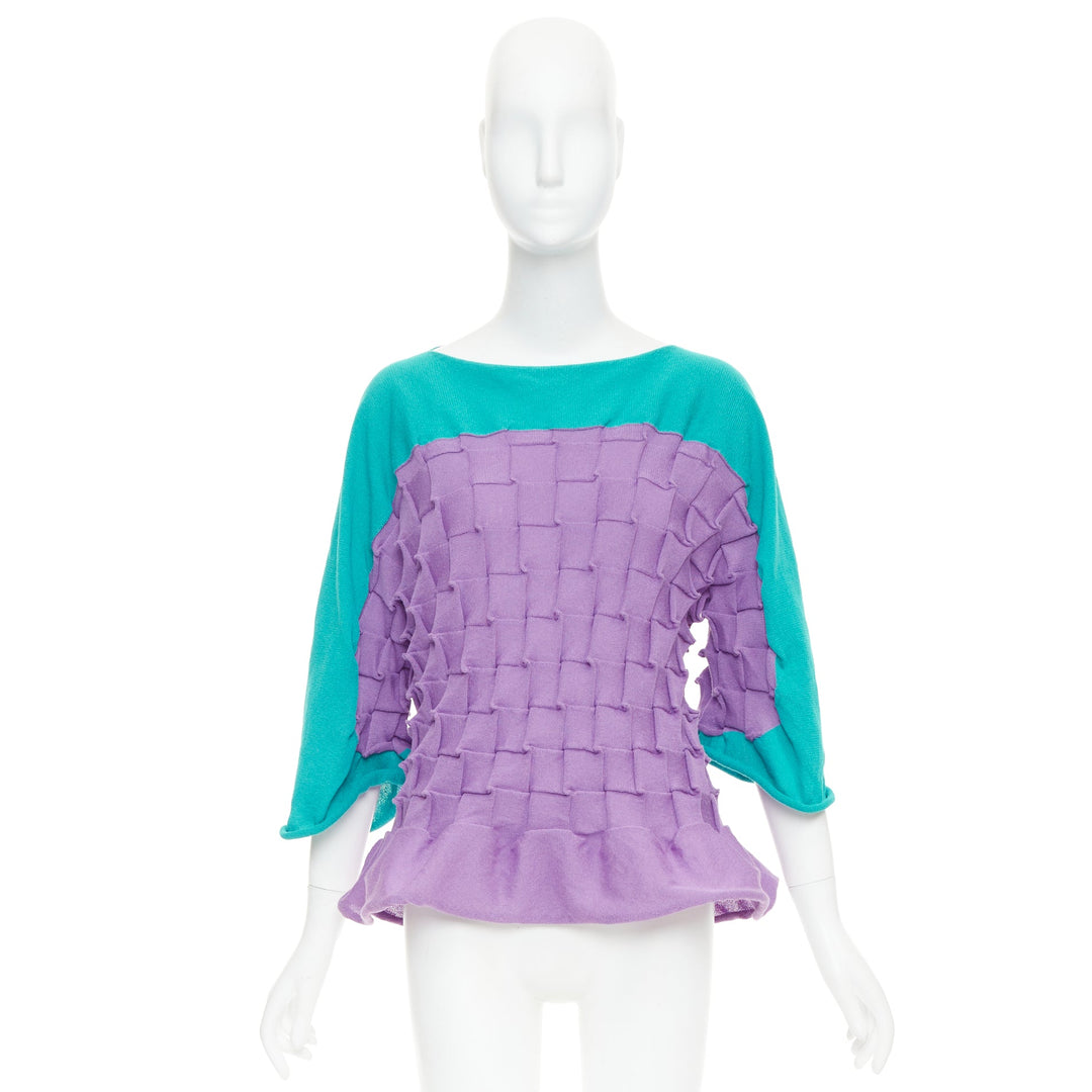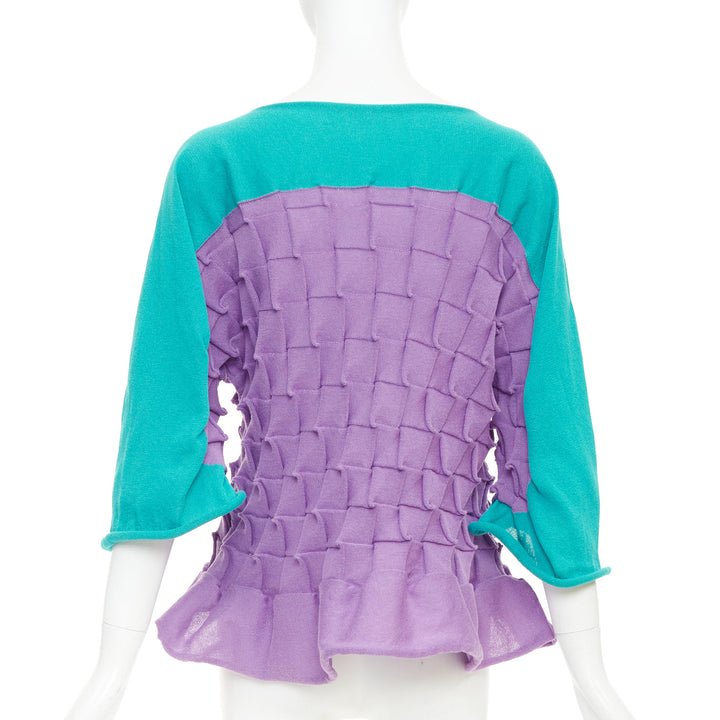 ISSEY MIYAKE purple green cotton bateau weave pleated sweater JP2 M
