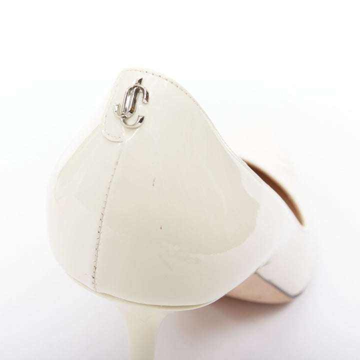 JIMMY CHOO Love 85 Latte cream patent JC emblem pumps EU39.5