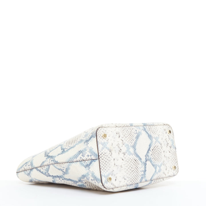 KATE SPADE blue cream scaled print goat skin gold logo drawstring tote bag
