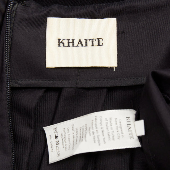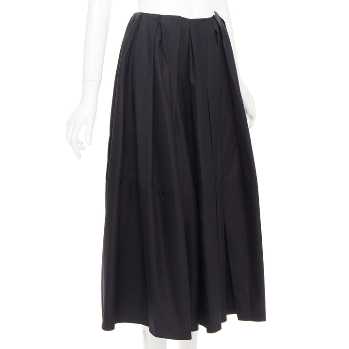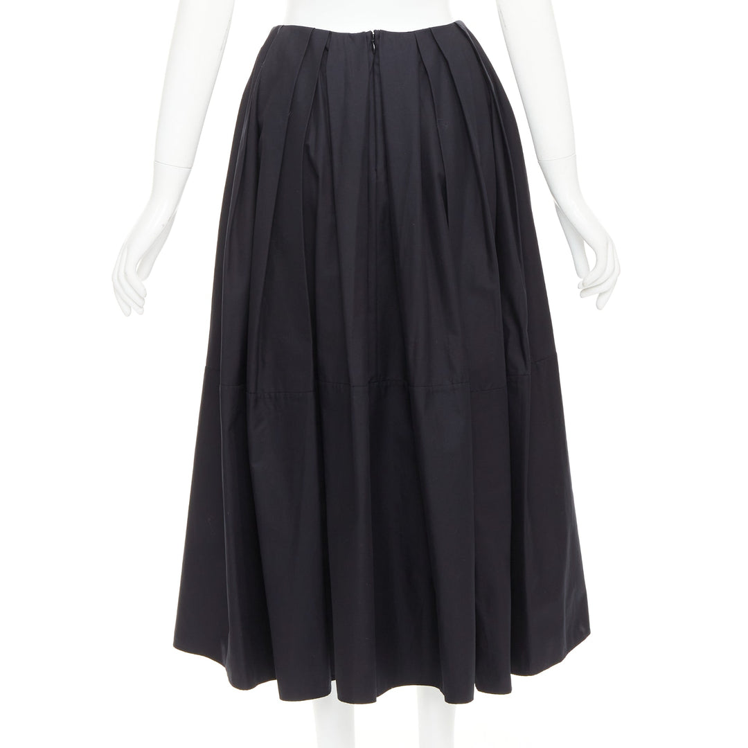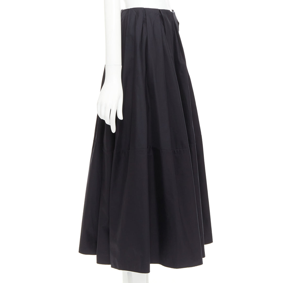 KHAITE black 100% cotton invisible waistband pleated full tea length skirt US2 S