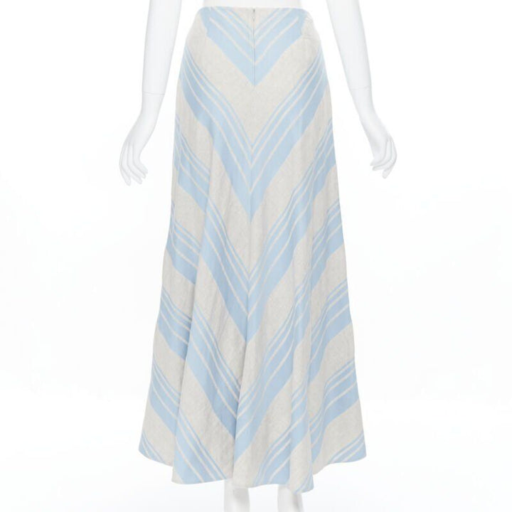 LEE MATTHEWS light grey blue striped linen cotton flared midi casual skirt US0