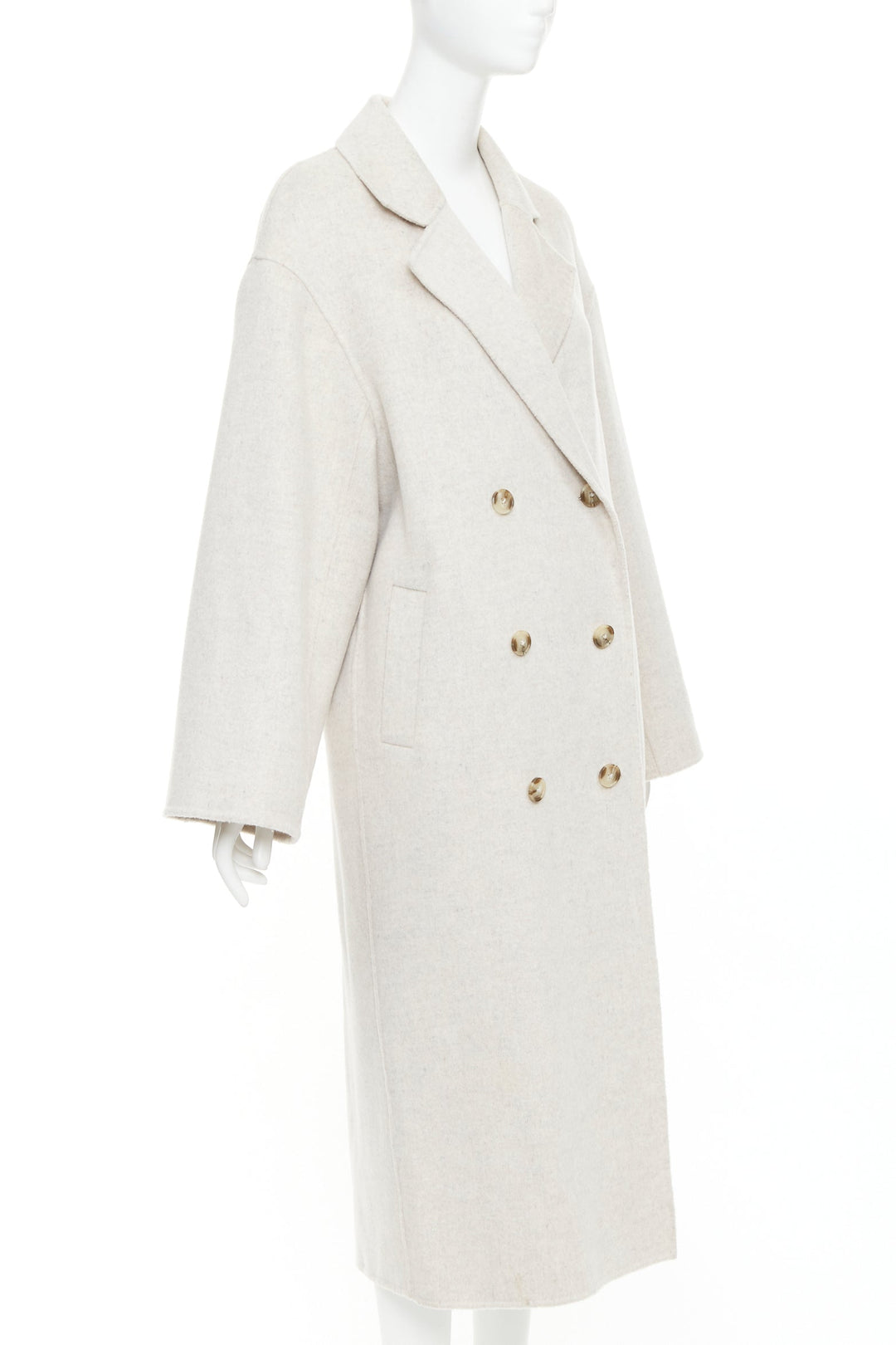 LOU LOU STUDIO Borneo light grey wool cashmere felt double breasted long coat XS