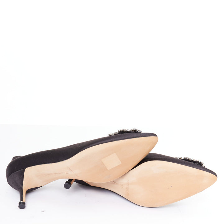MANOLO BLAHNIK Hangisi black satin crystal brooch buckle heeled pumps EU38