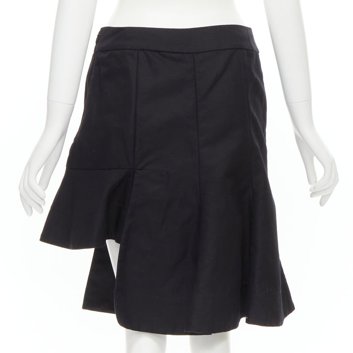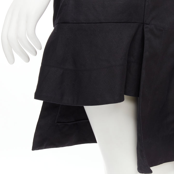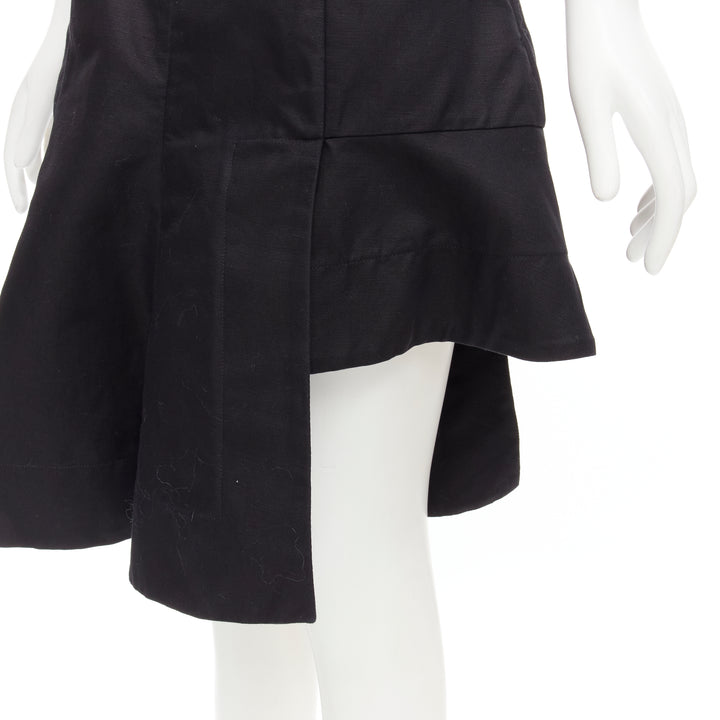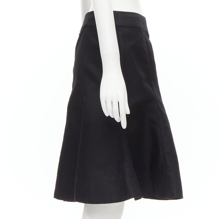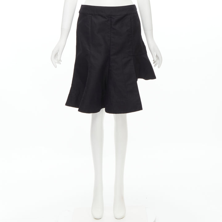 MARNI black cotton linen asymmetric step hem pleated flared skirt IT42 S