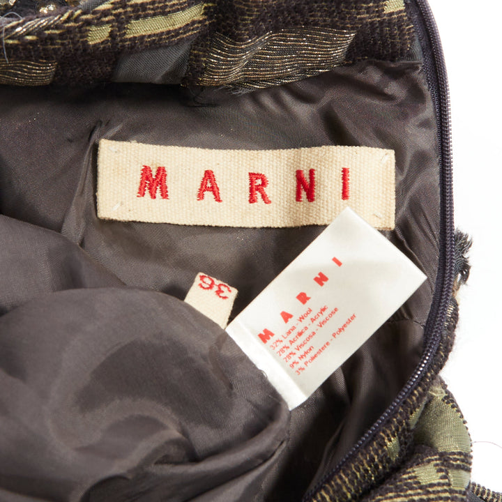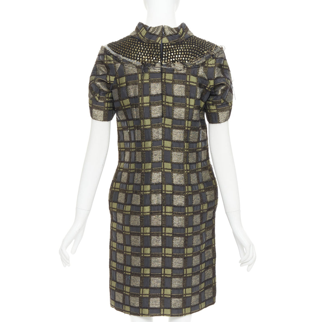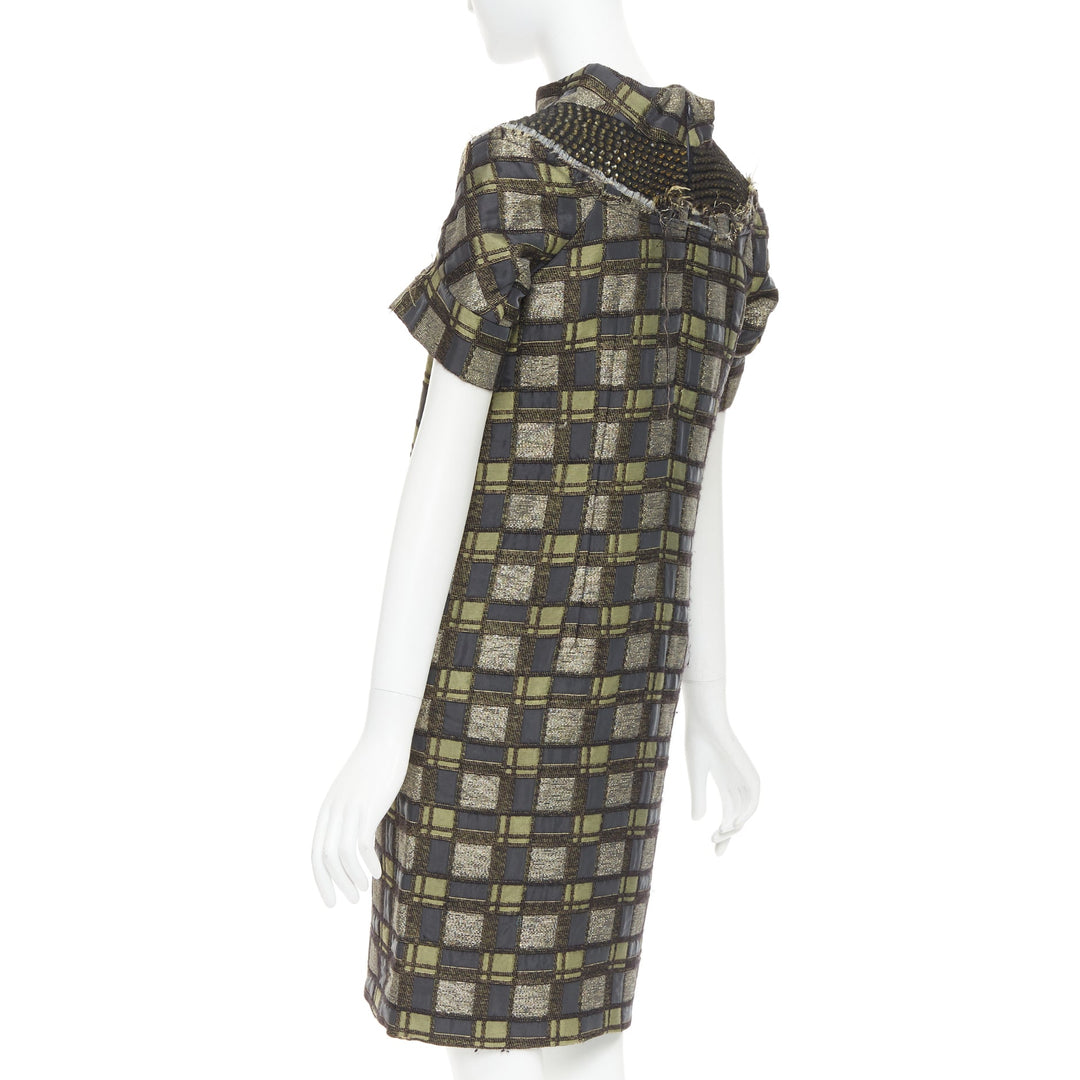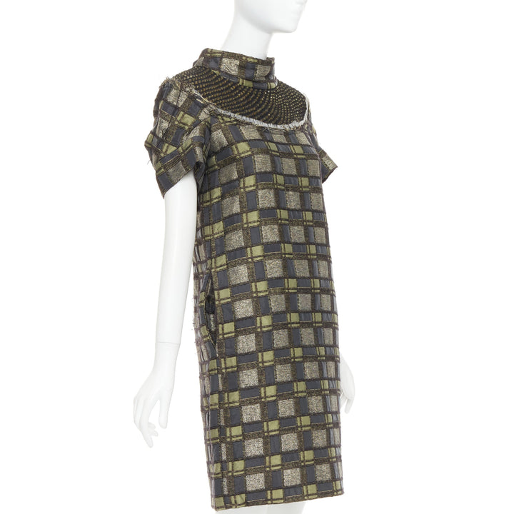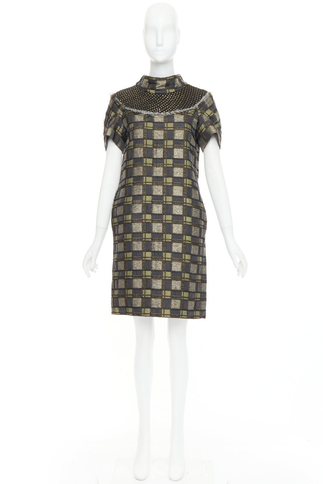 MARNI bronze grey embellished collar checked brocade dress IT36 XXS