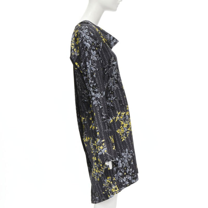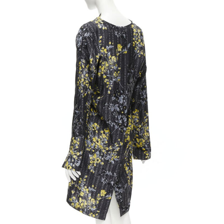 MARNI grey geometric yellow floral print cowl neck 100% silk dress IT38 XS