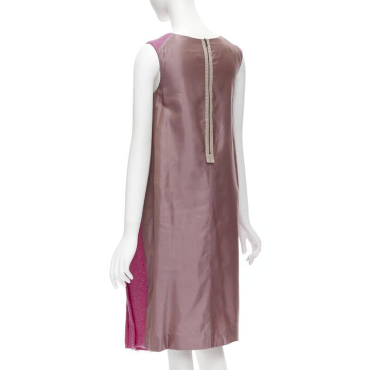 MARNI pink wool tweed gathered pleat contrast back sleeveless dress IT38 XS