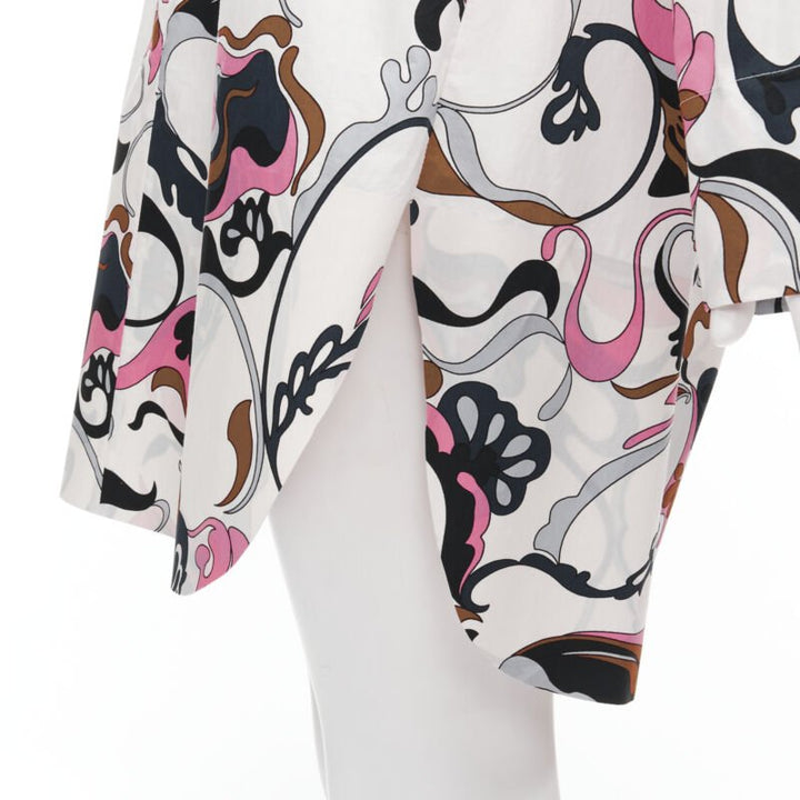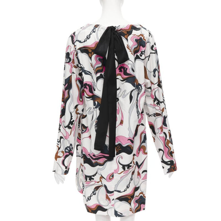 MARNI white navy pink swirl floral cotton boat neck long sleeve dress IT40 S
