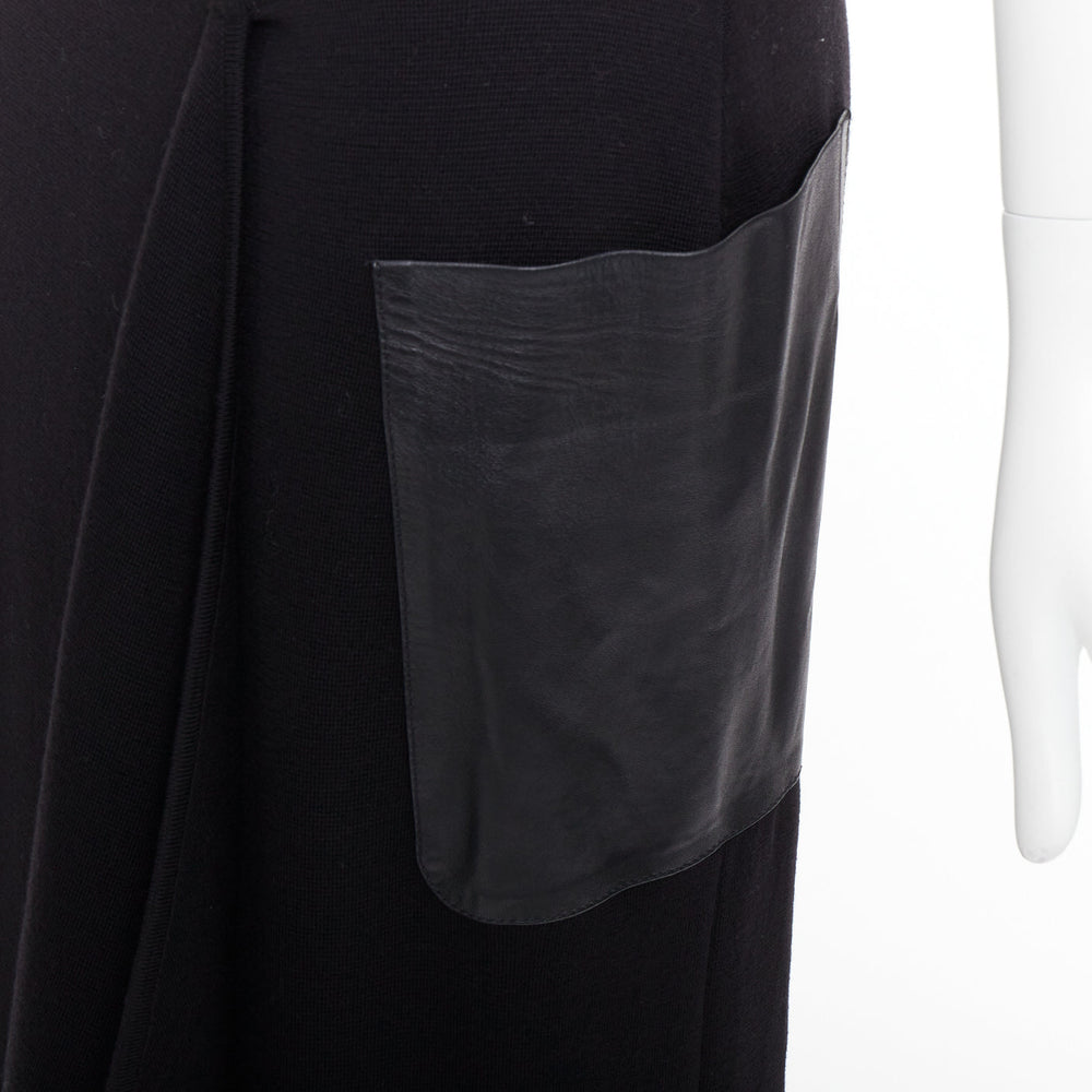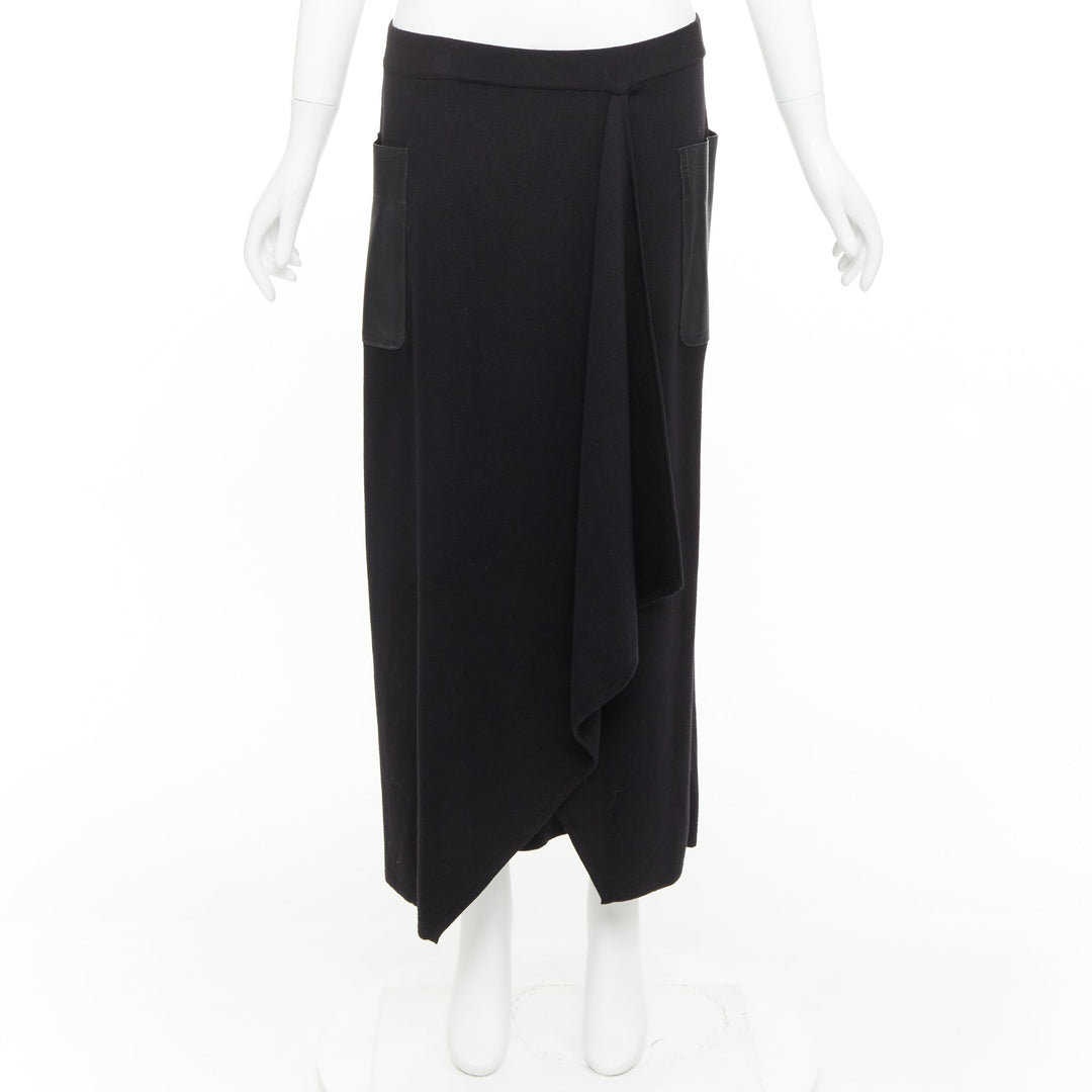 MAX MARA black leather patch pocket drape front mid waist midi skirt