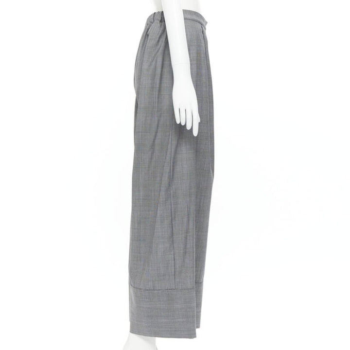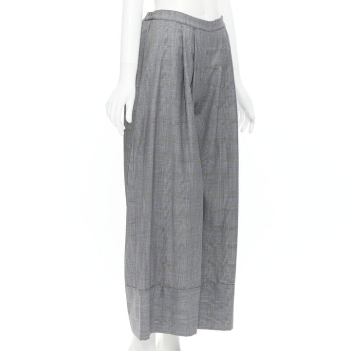MICHAEL LO SORDO 100% wool grey herringbone check wide cuff wide pants UK6