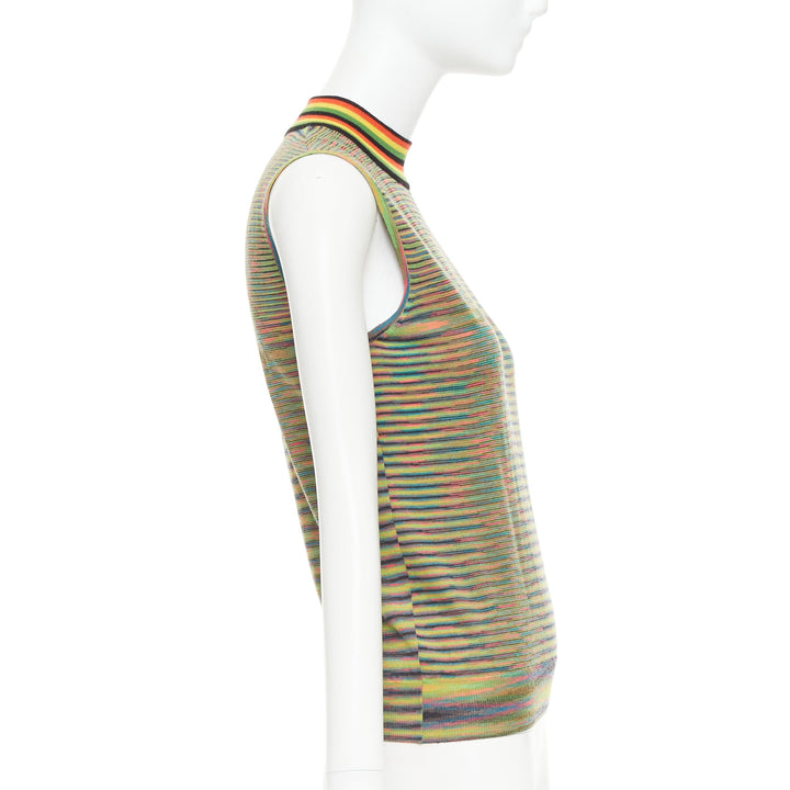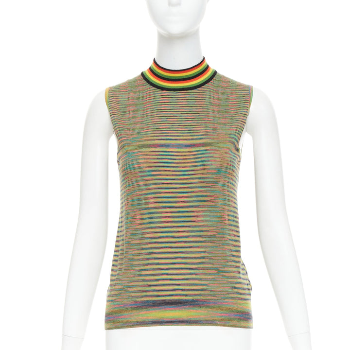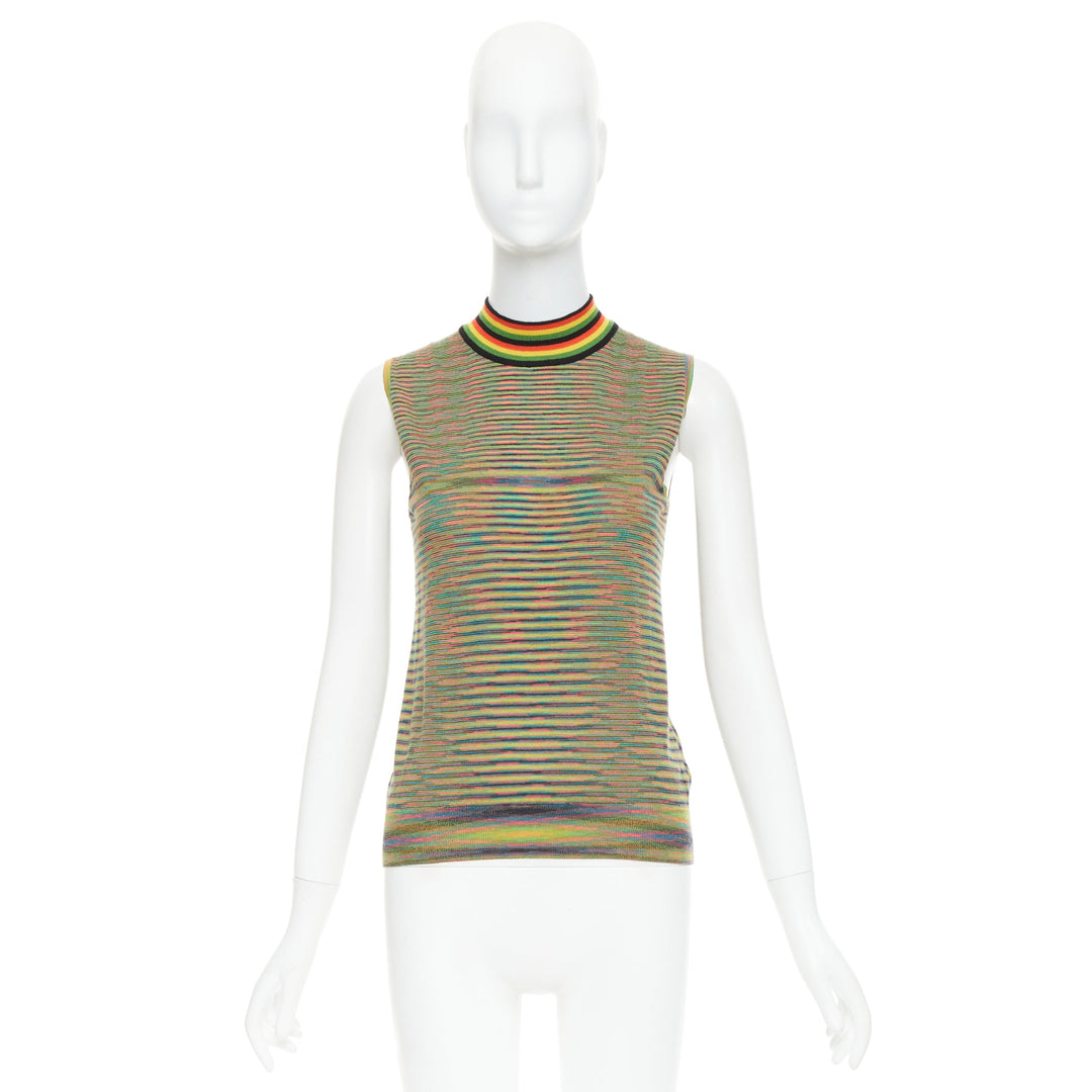 MISSONI Rasta rainbow multicolour graphic wool knitted high neck tank top IT40 S