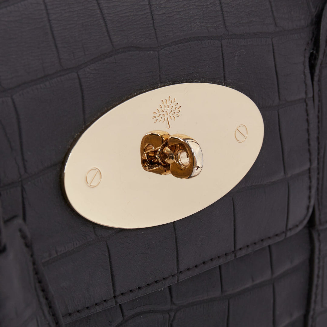 MULBERRY Bayswater black embossed croc leather print satchel tote bag