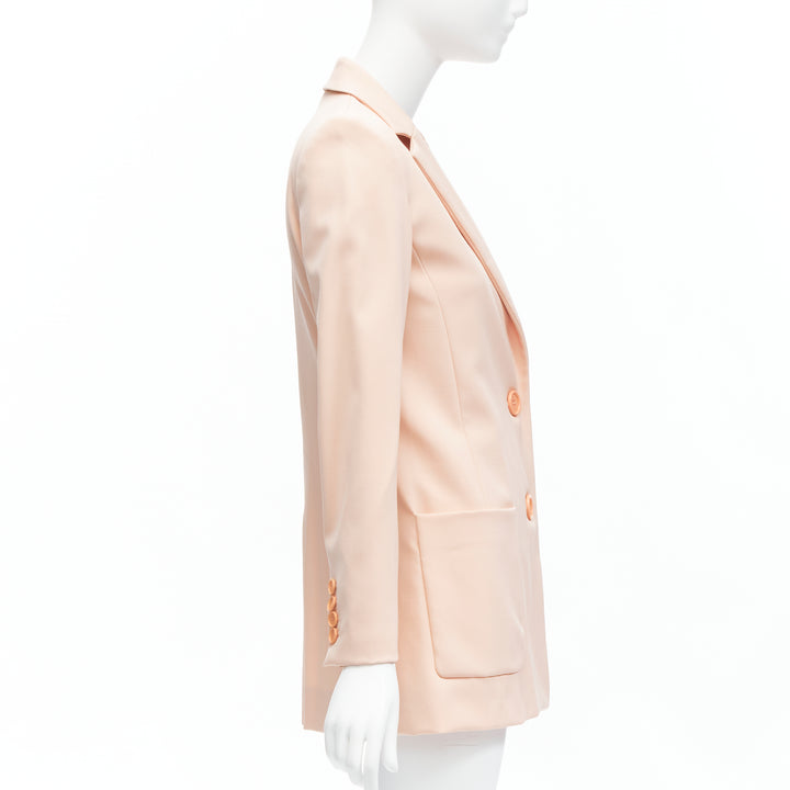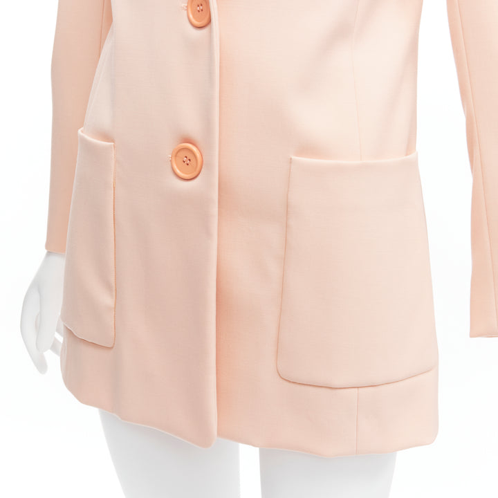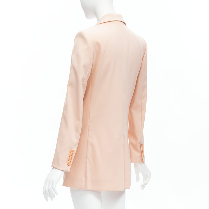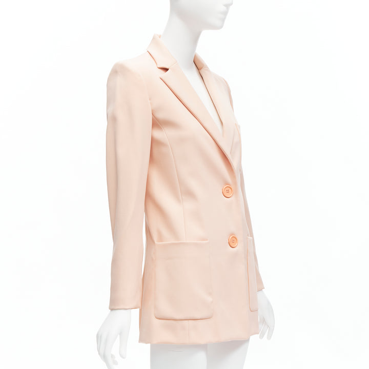 OSCAR DE LA RENTA 2018 blush pink virgin wool 3 pocket longline blazer jacket US0 XS