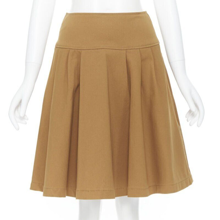 OSCAR DE LA RENTA tan brown nylon cotton flared knee length skirt US0 25"