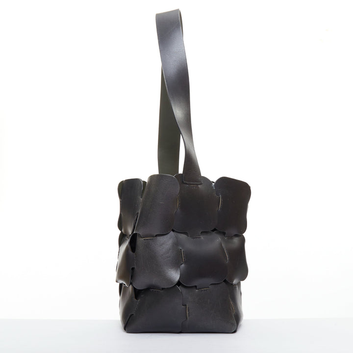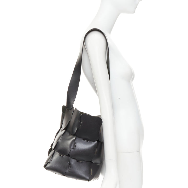 PACO RABANNE Bucket black puzzle leather patch medium shoulder bag