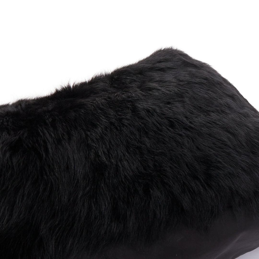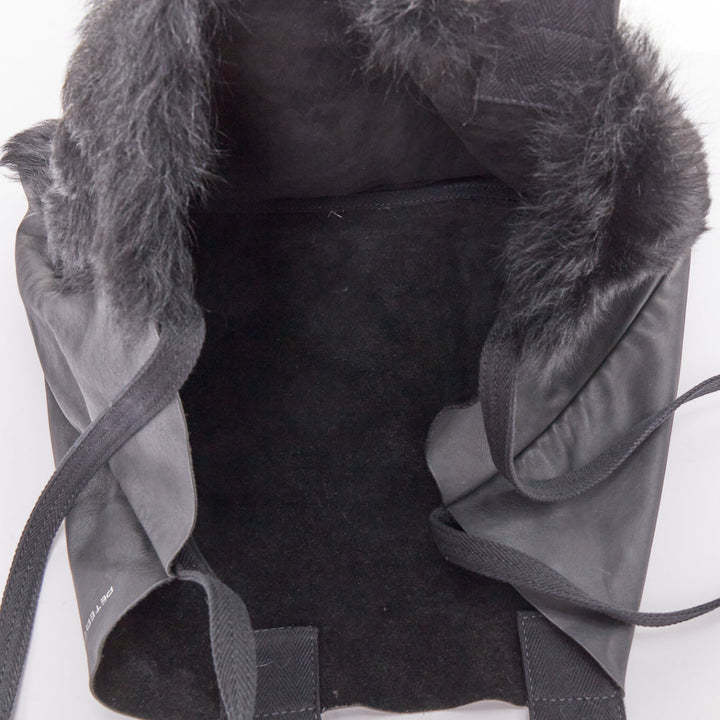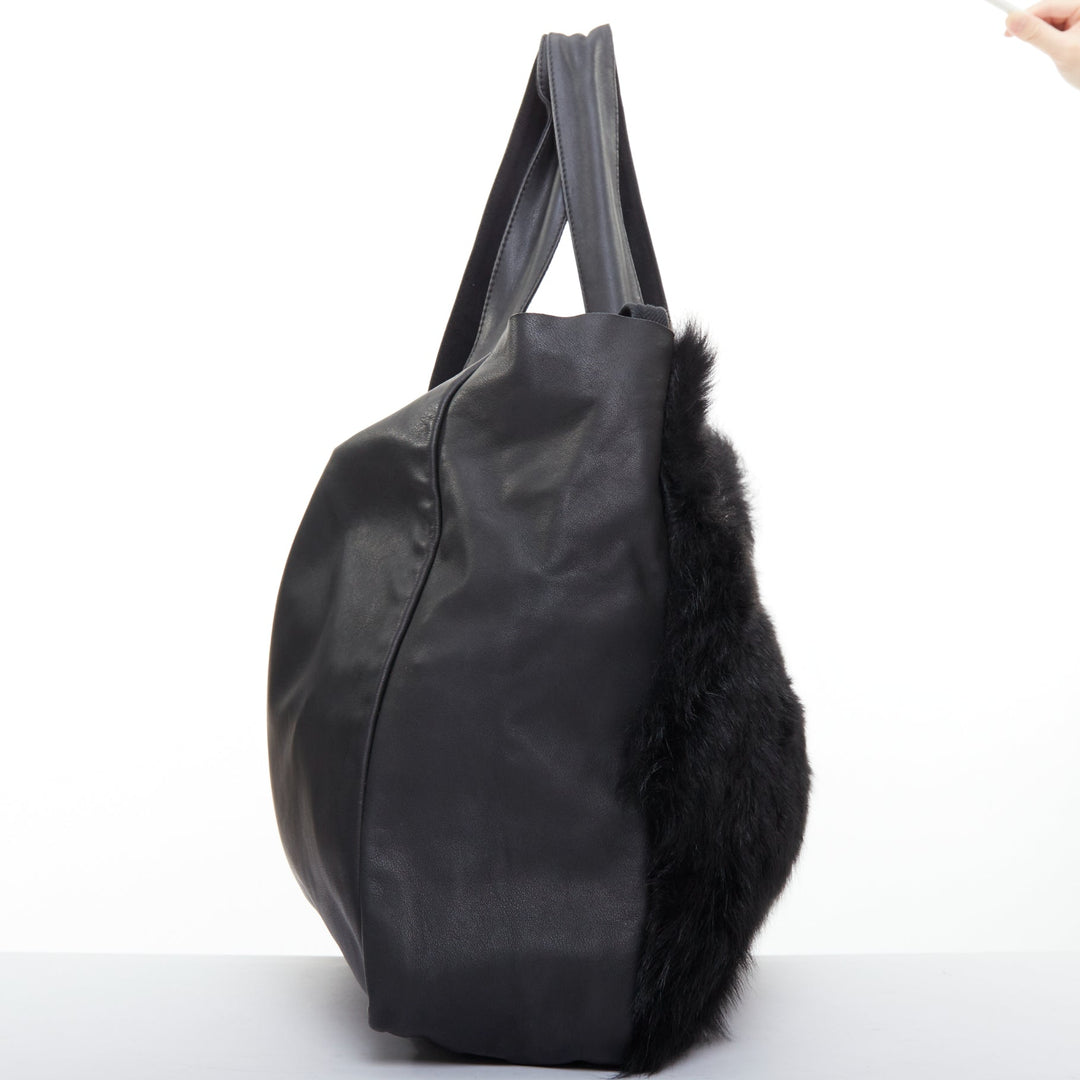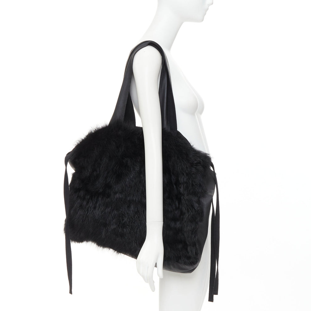 PETER DO black shearling fur supple soft leather white logo shoulder tote bag