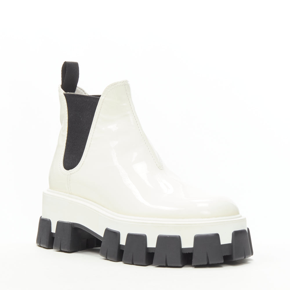 PRADA 2019 Monolith white patent lug sole platform ankle boot EU36