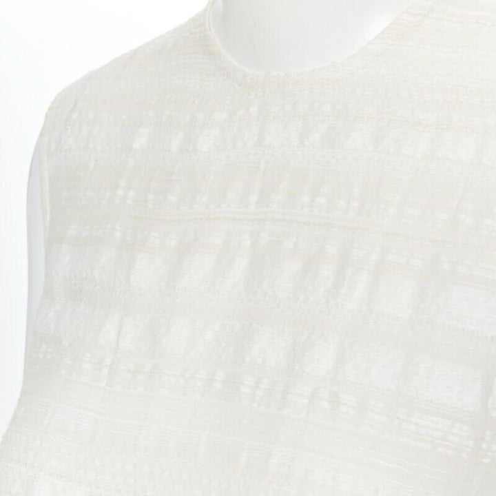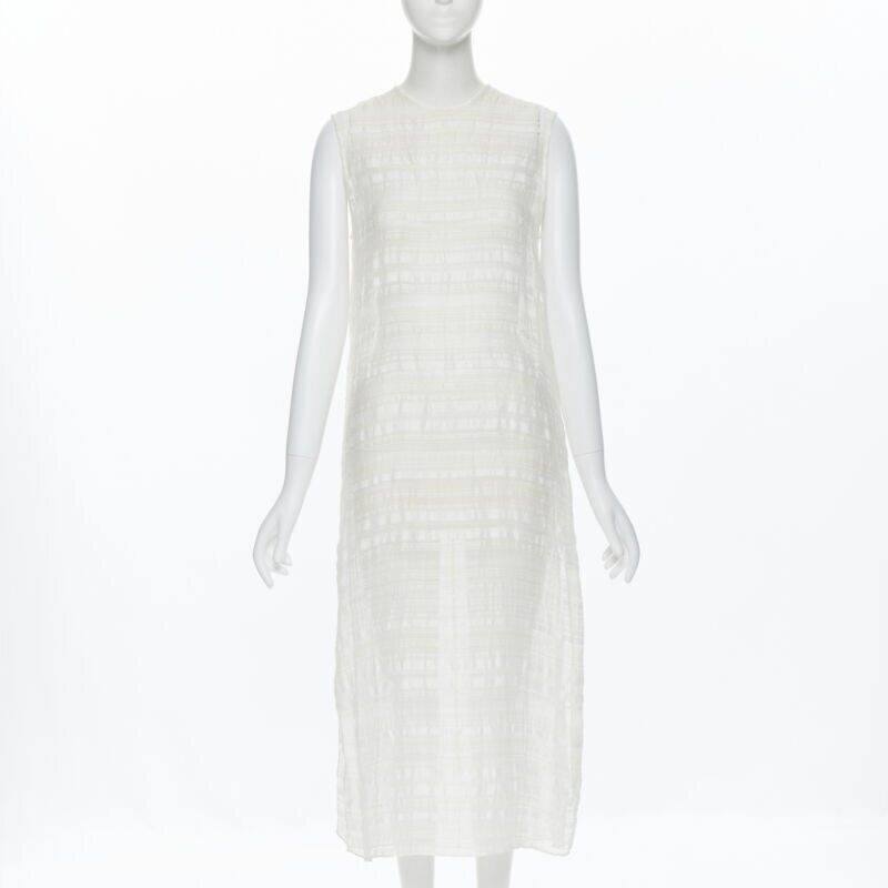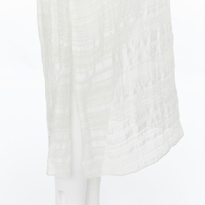 RAEY beige striped textured muslin semi sheer midi casual day dress UK6 XS