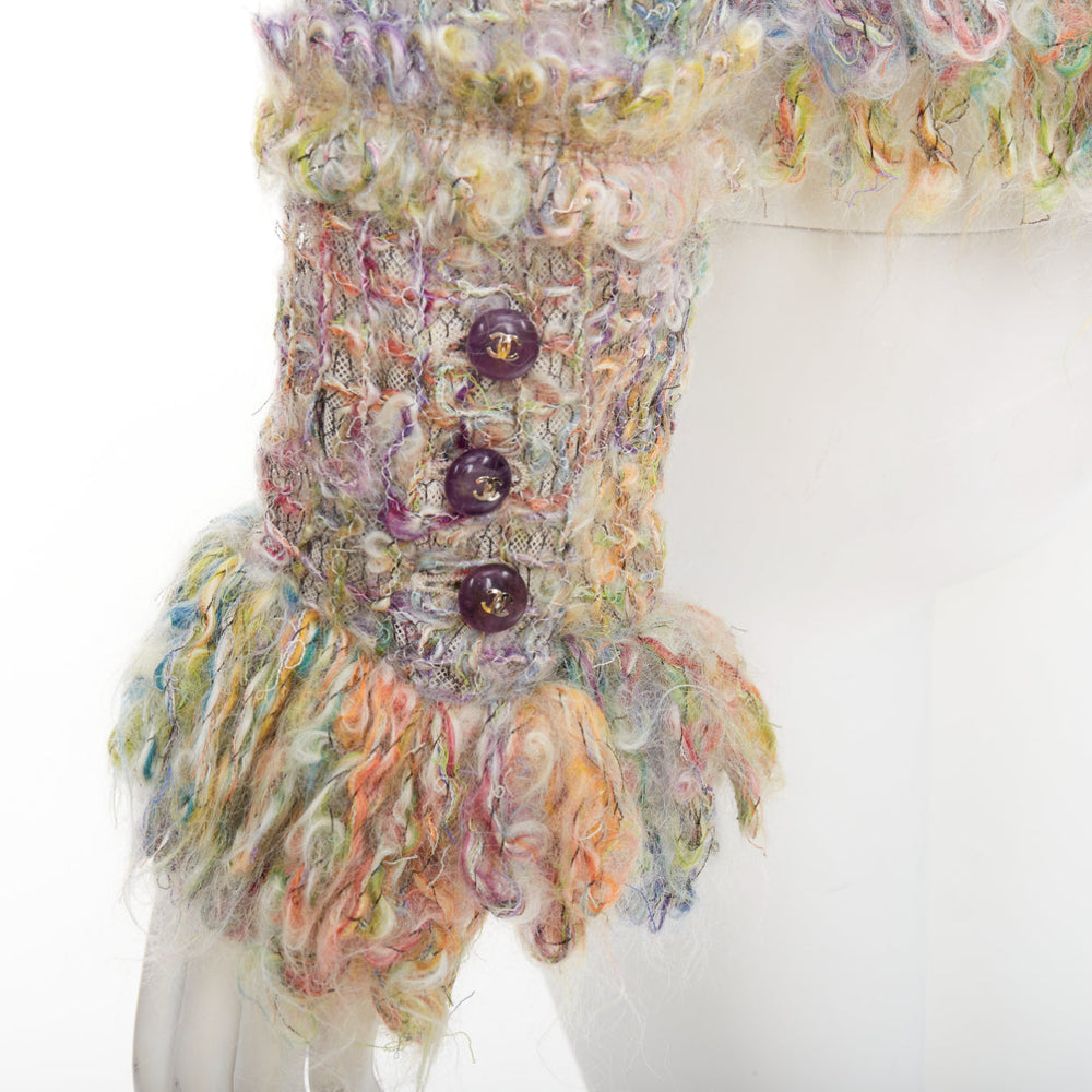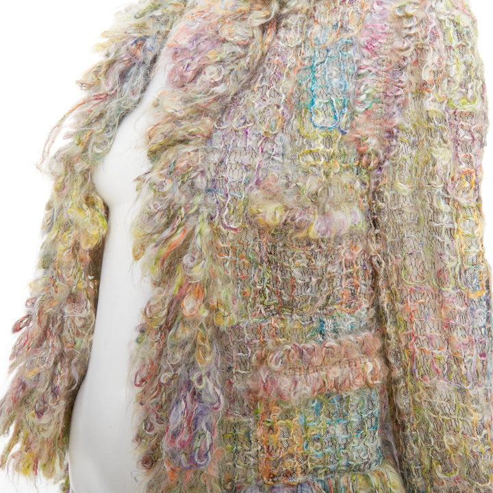 rare CHANEL 03A Runway multicolor fluffy mohair boucle tweed jacket FR42 XL
