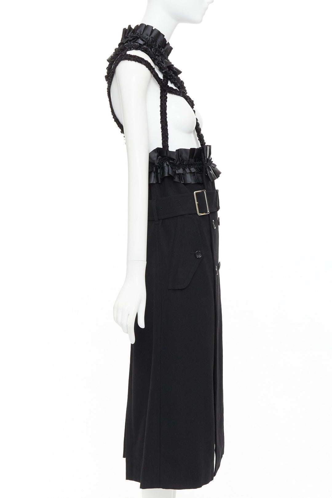 rare COMME DES GARCONS 2008 Runway Bad Taste black ruffle caged deconstructed trench dress M