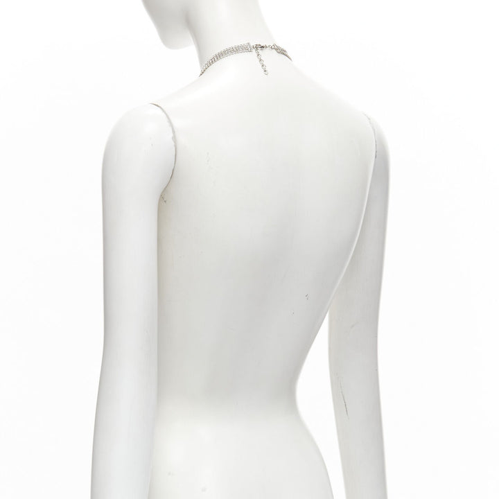rare GUCCI ALESSANDRO MICHELE silver crystal GG triangle tassel necklace