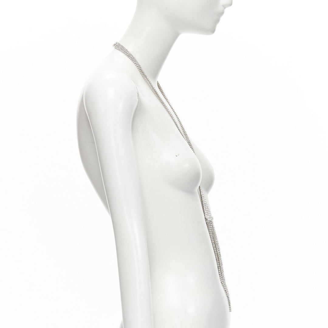 rare GUCCI ALESSANDRO MICHELE silver crystal GG triangle tassel necklace