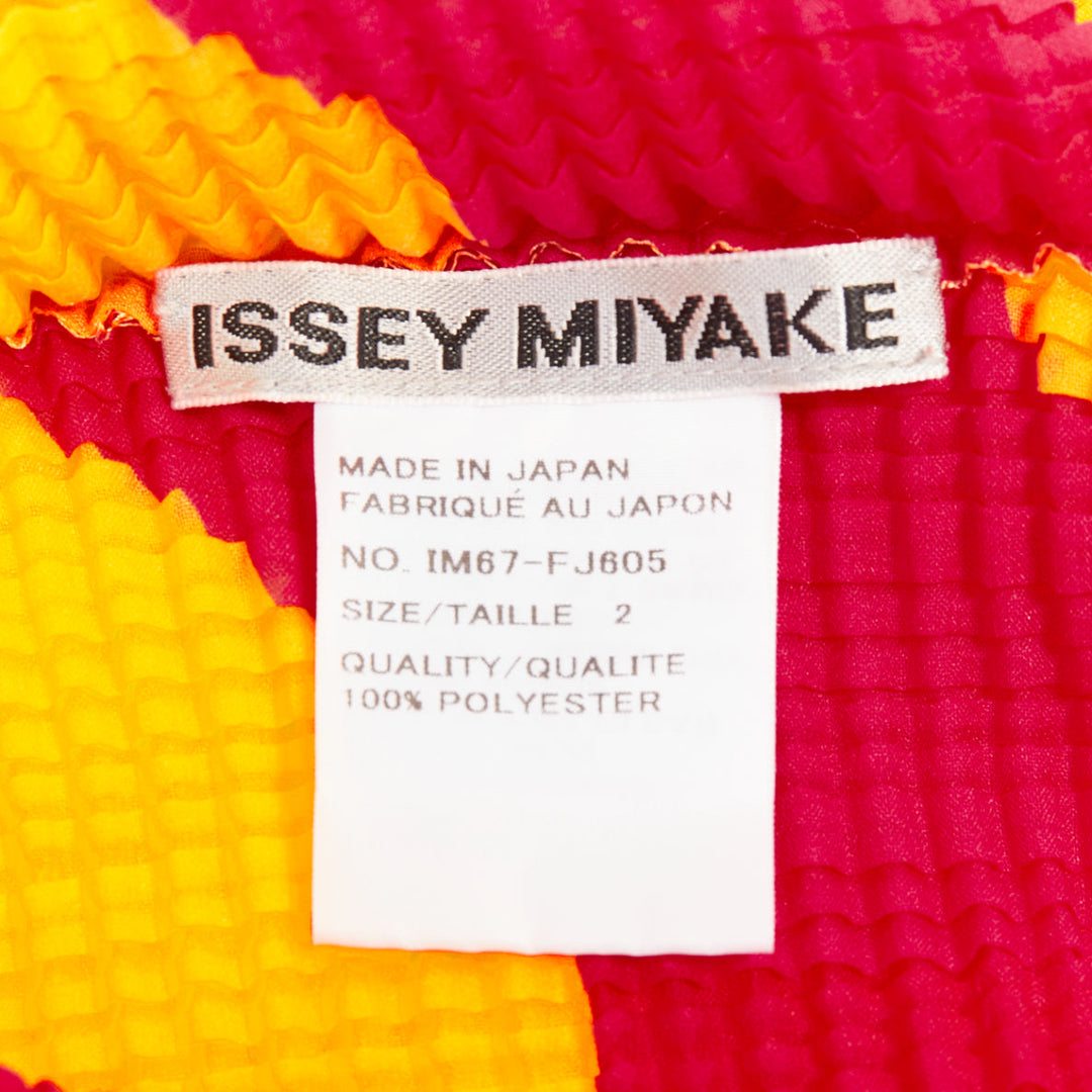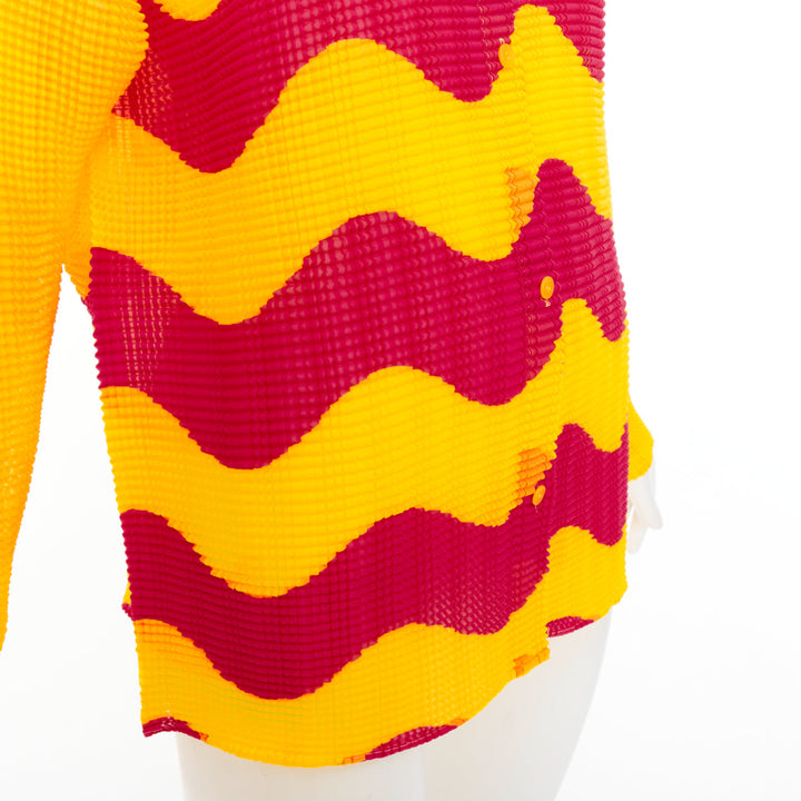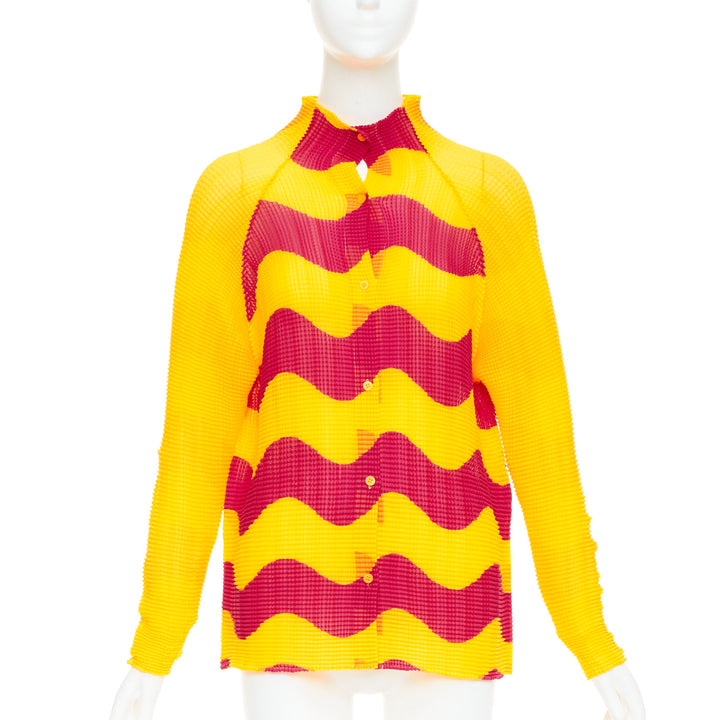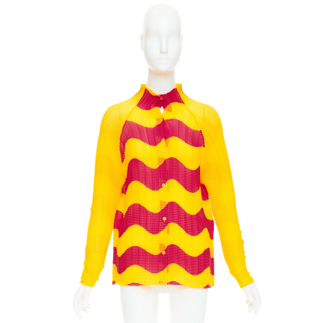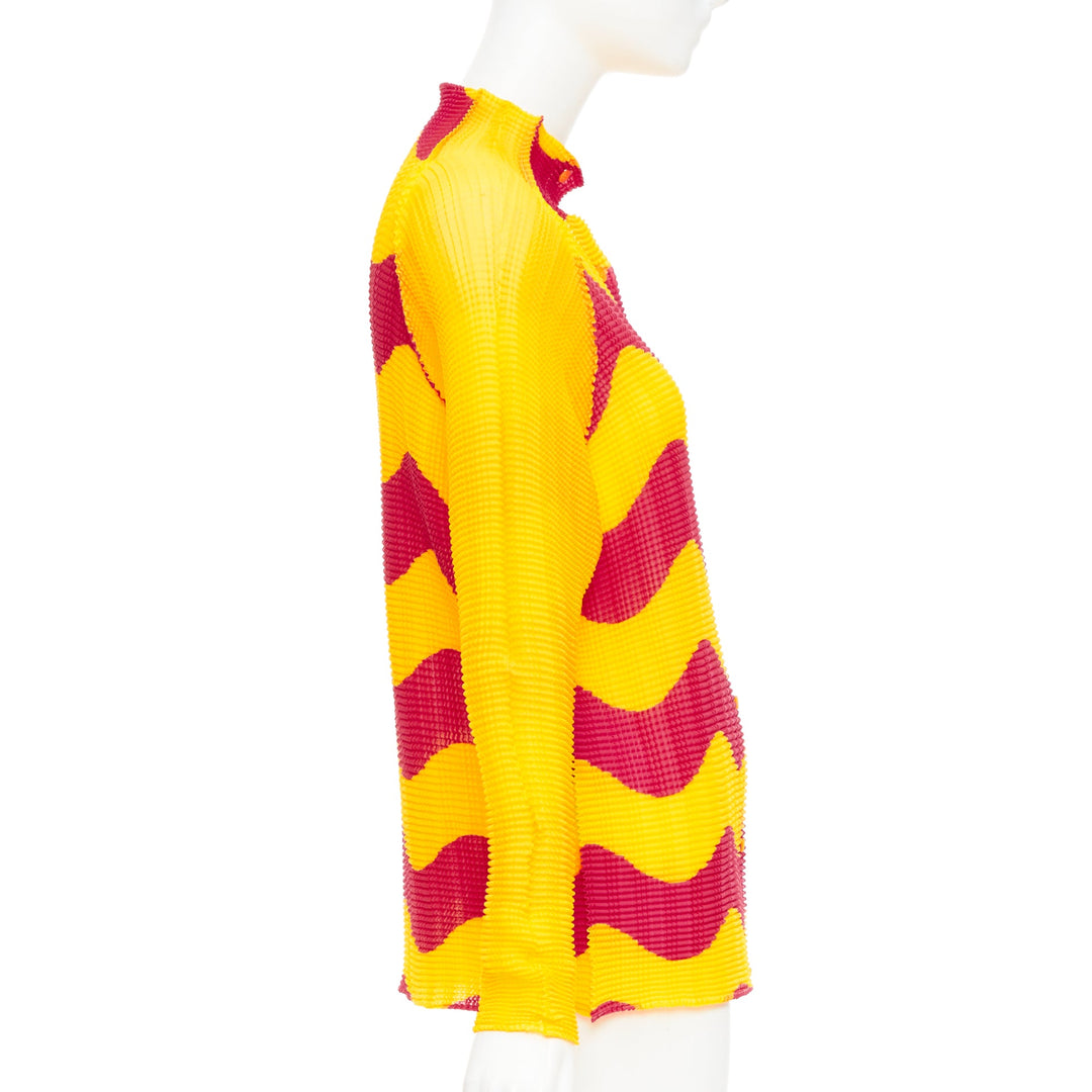rare ISSEY MIYAKE Pleats Please graphic yellow red wave plisse hi neck top JP2 M