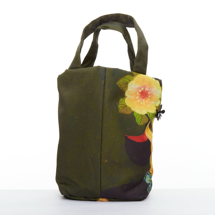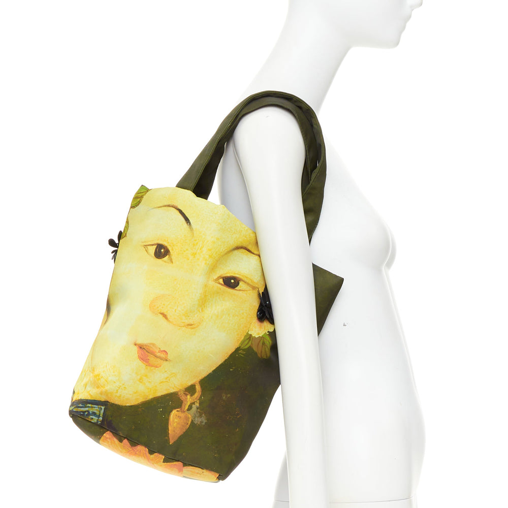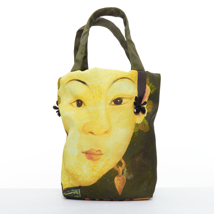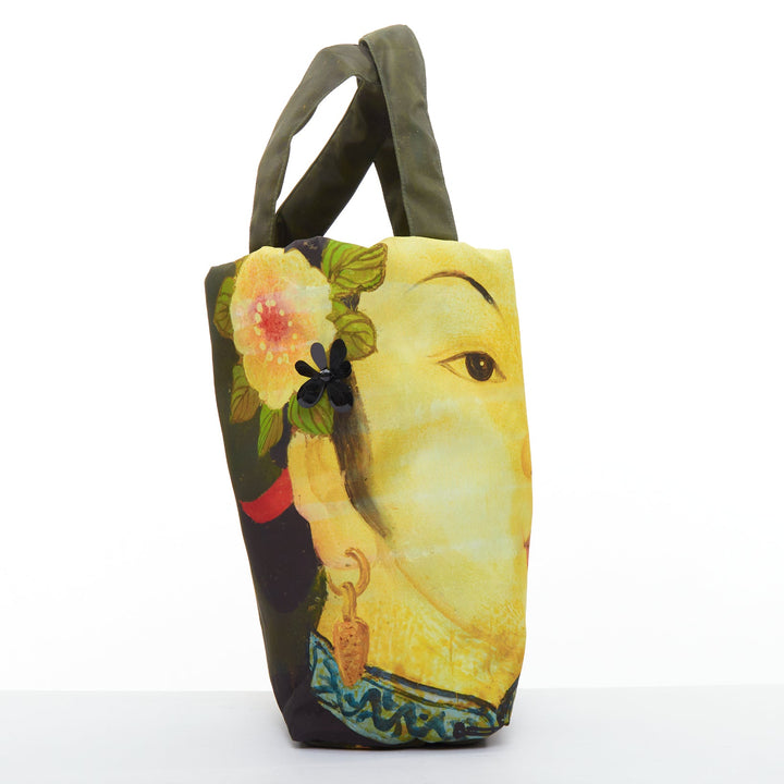 rare SIMONE ROCHA Ming Dynasty Maiden print embellished green nylon tote bag
