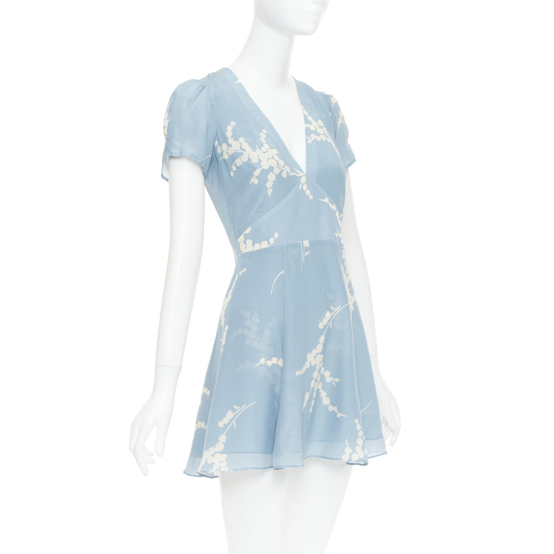 REALISATION Luella 100% silk light blue cream floral print V neck sundress XS