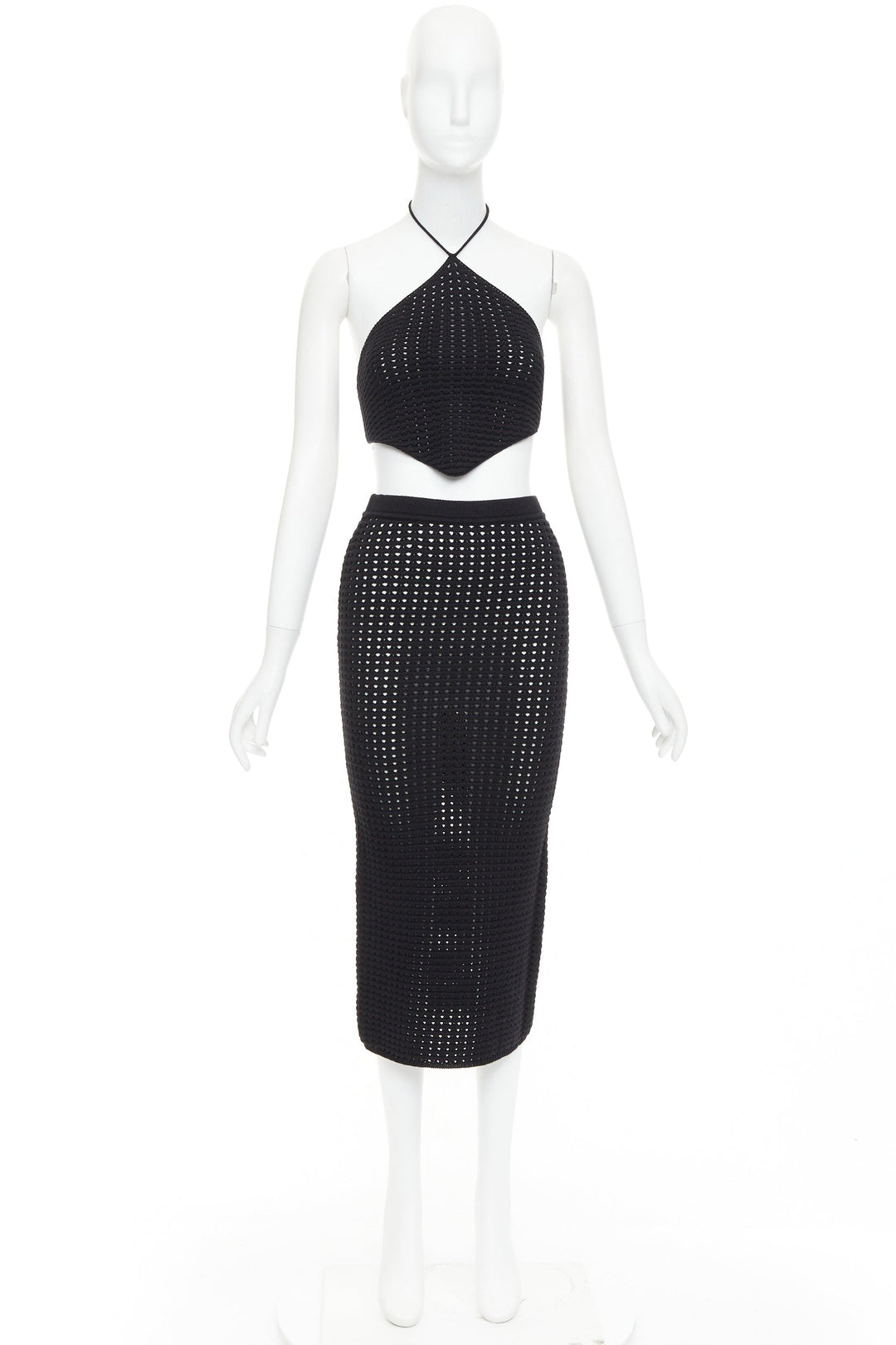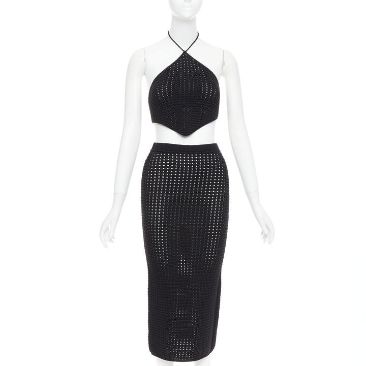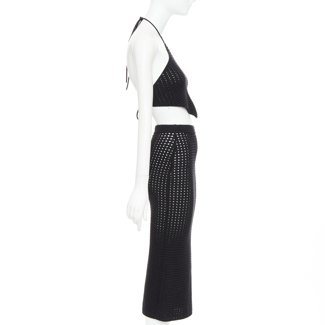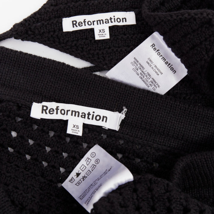 REFORMATION Circa black organically cotton open knit halter top skirt set XS