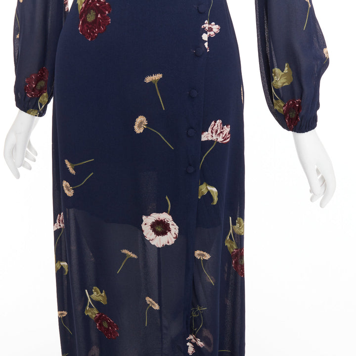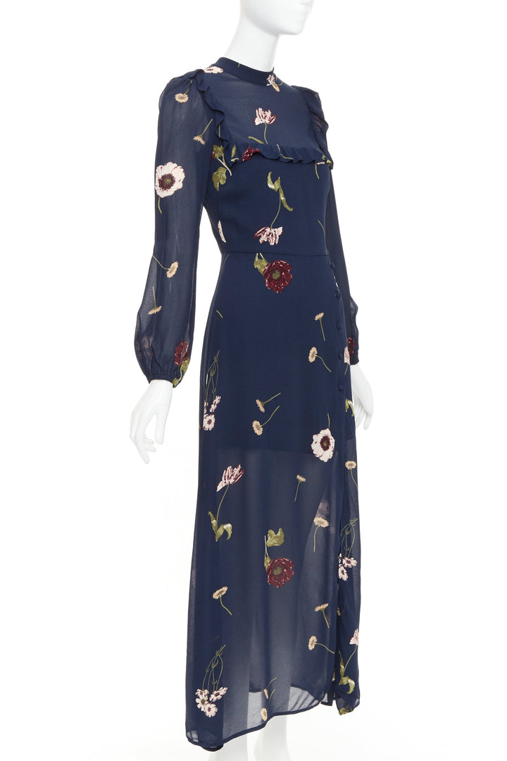 REFORMATION Gillian navy viscose floral print hi neck peasant dress US2 S
