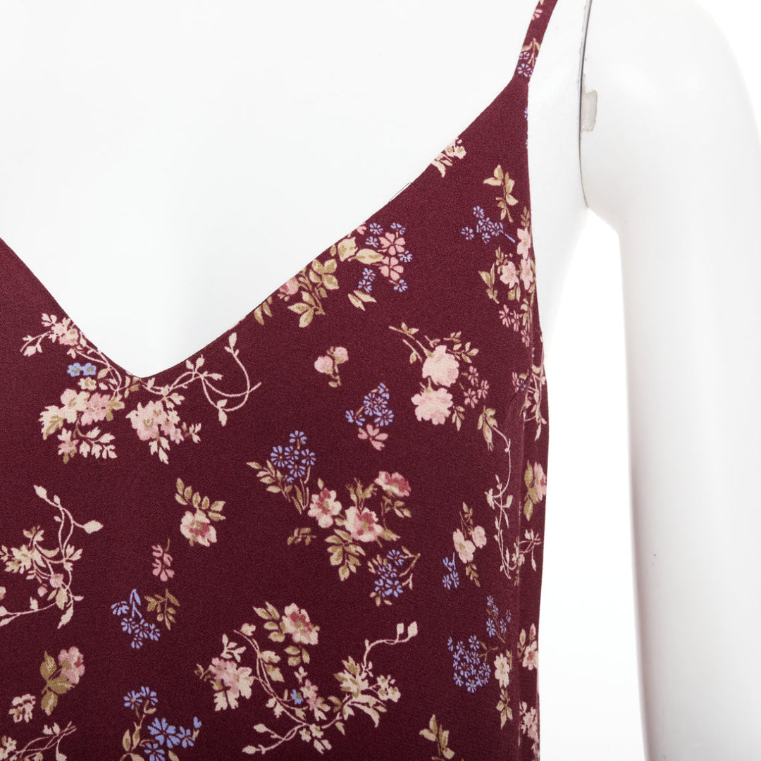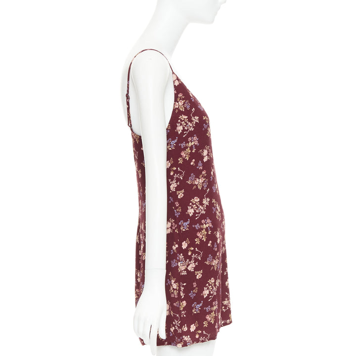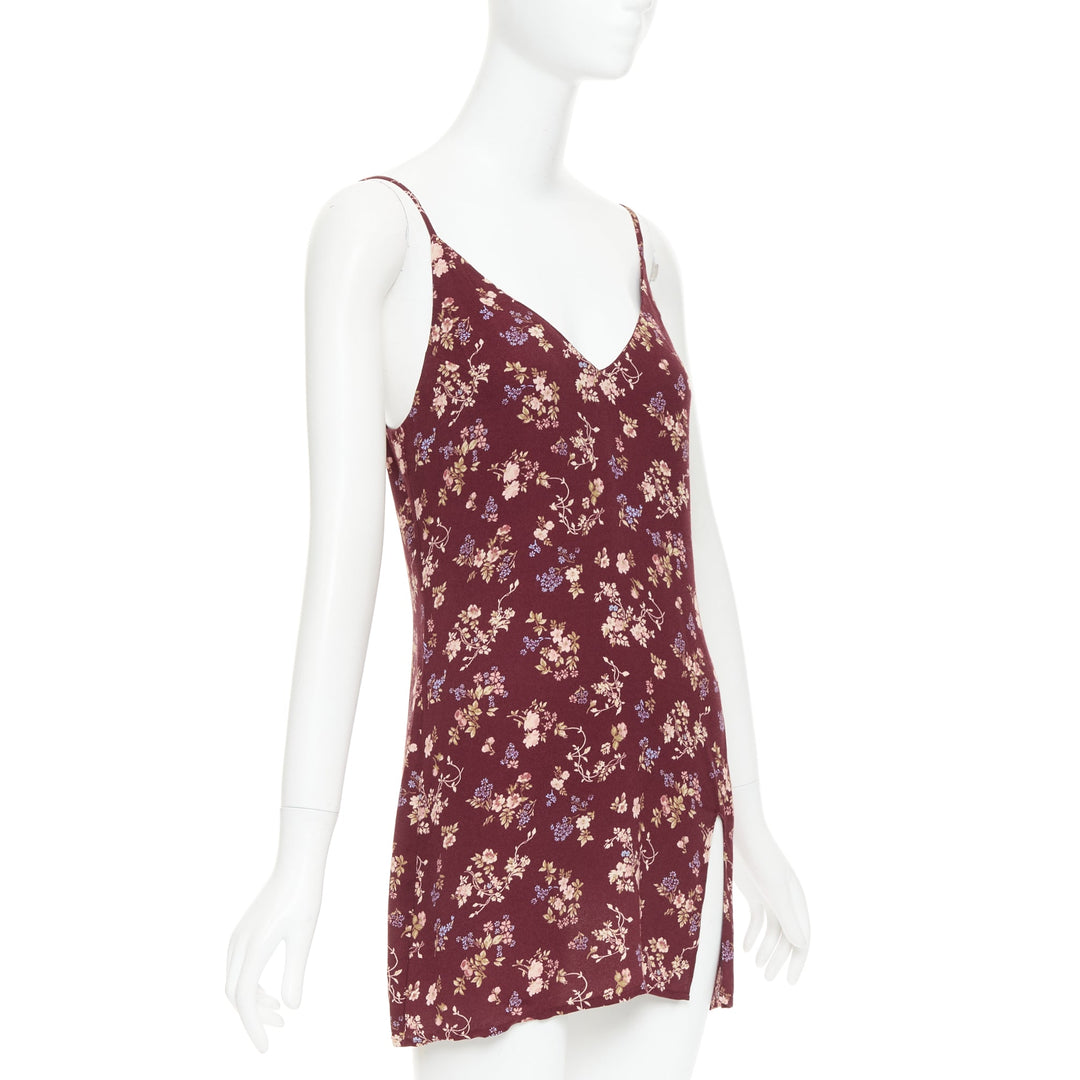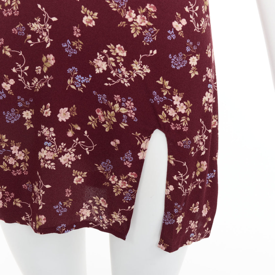 REFORMATION Marlowe burgundy viscose floral print high slit mini dress US0 XS
