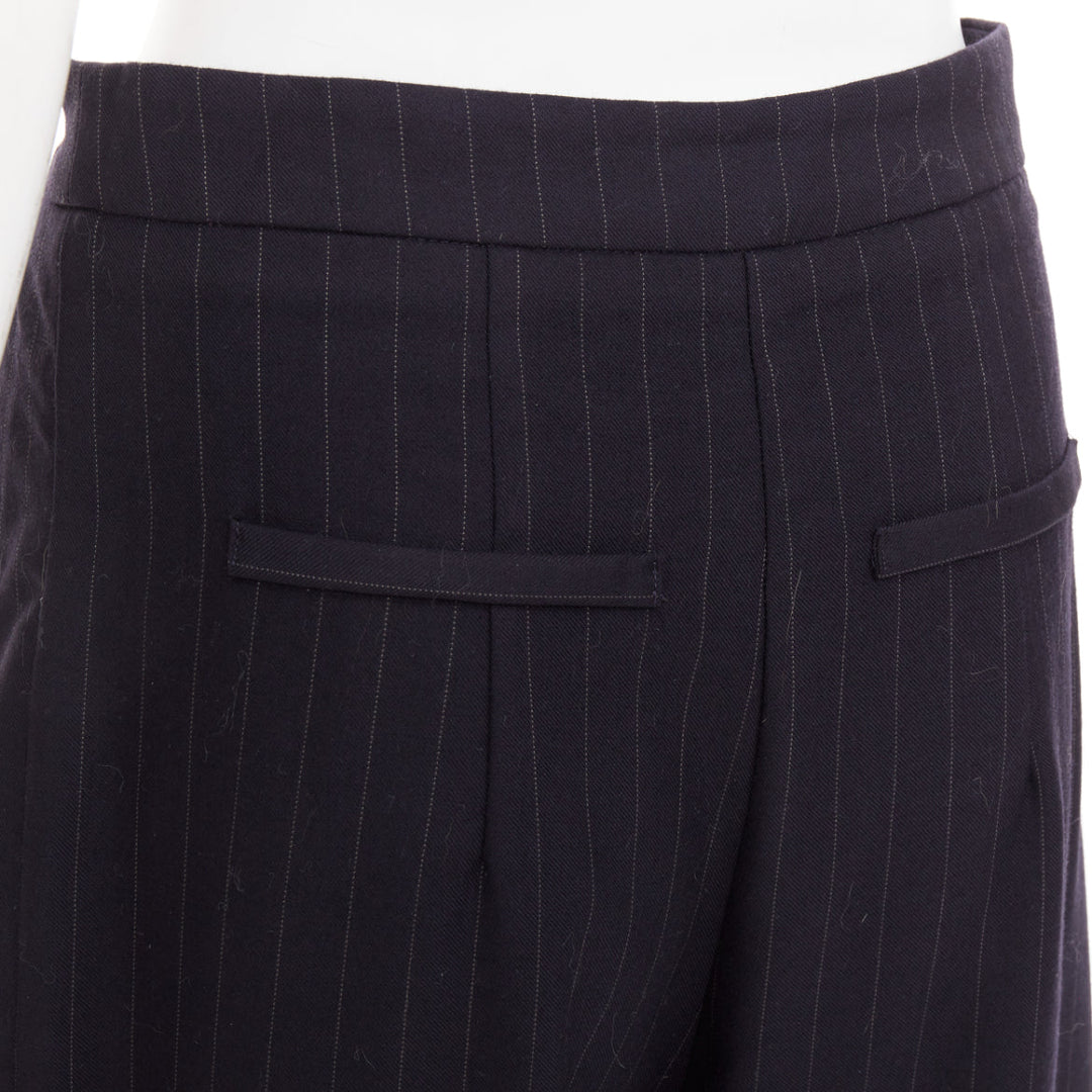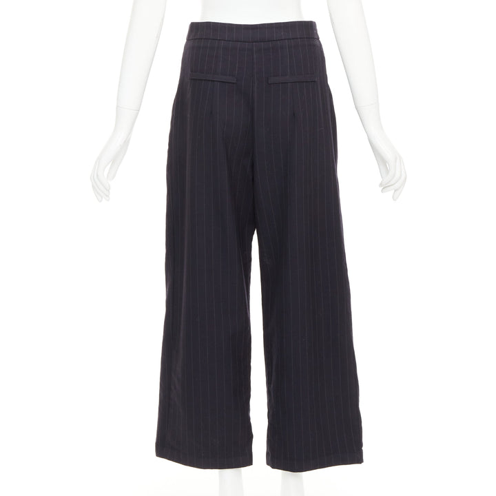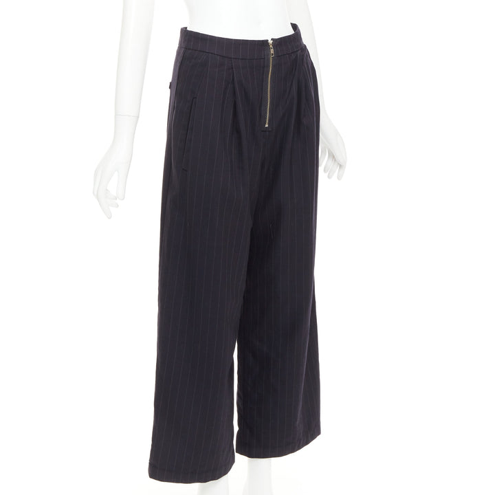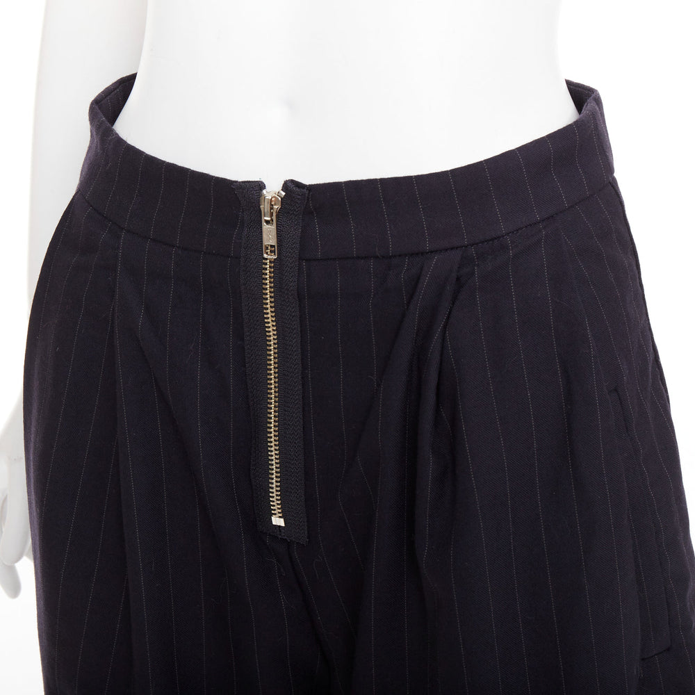 REFORMATION navy pinstripe surplus fabric silver zip fly wide pants US0 XS