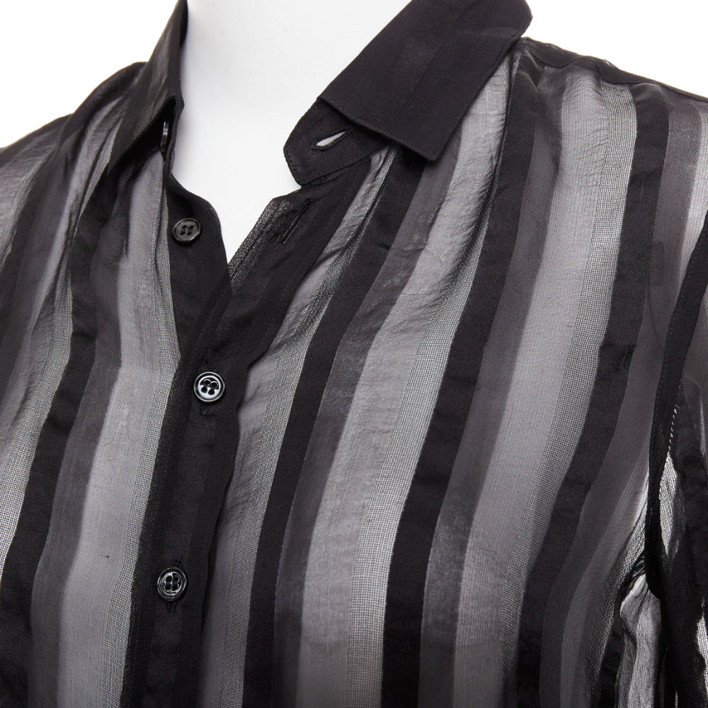 SAINT LAURENT 2013 black 100% silk vertical stripes sheer collared shirt FR36 S