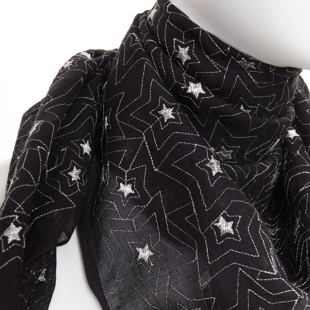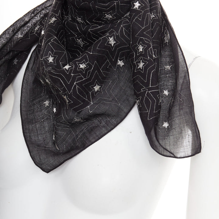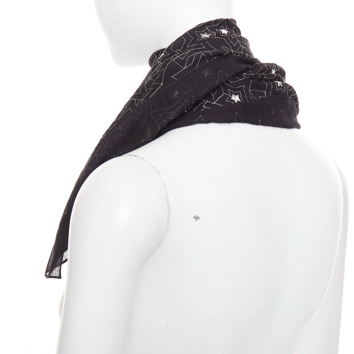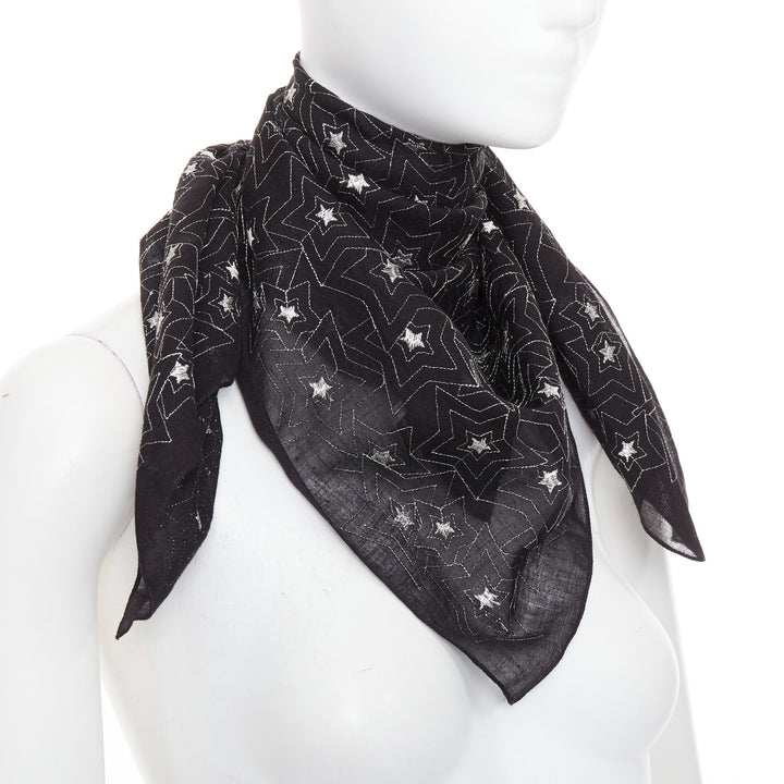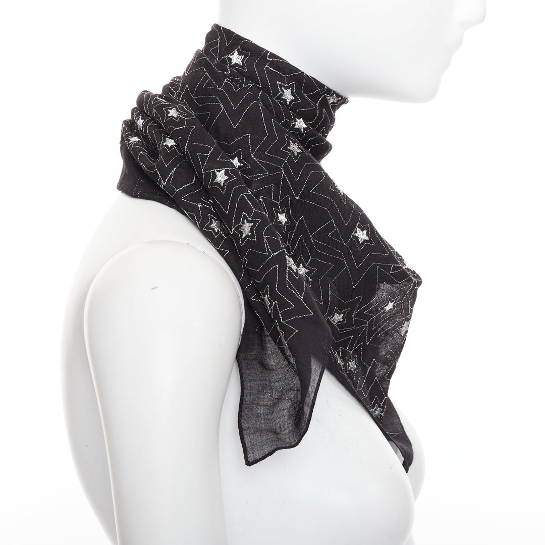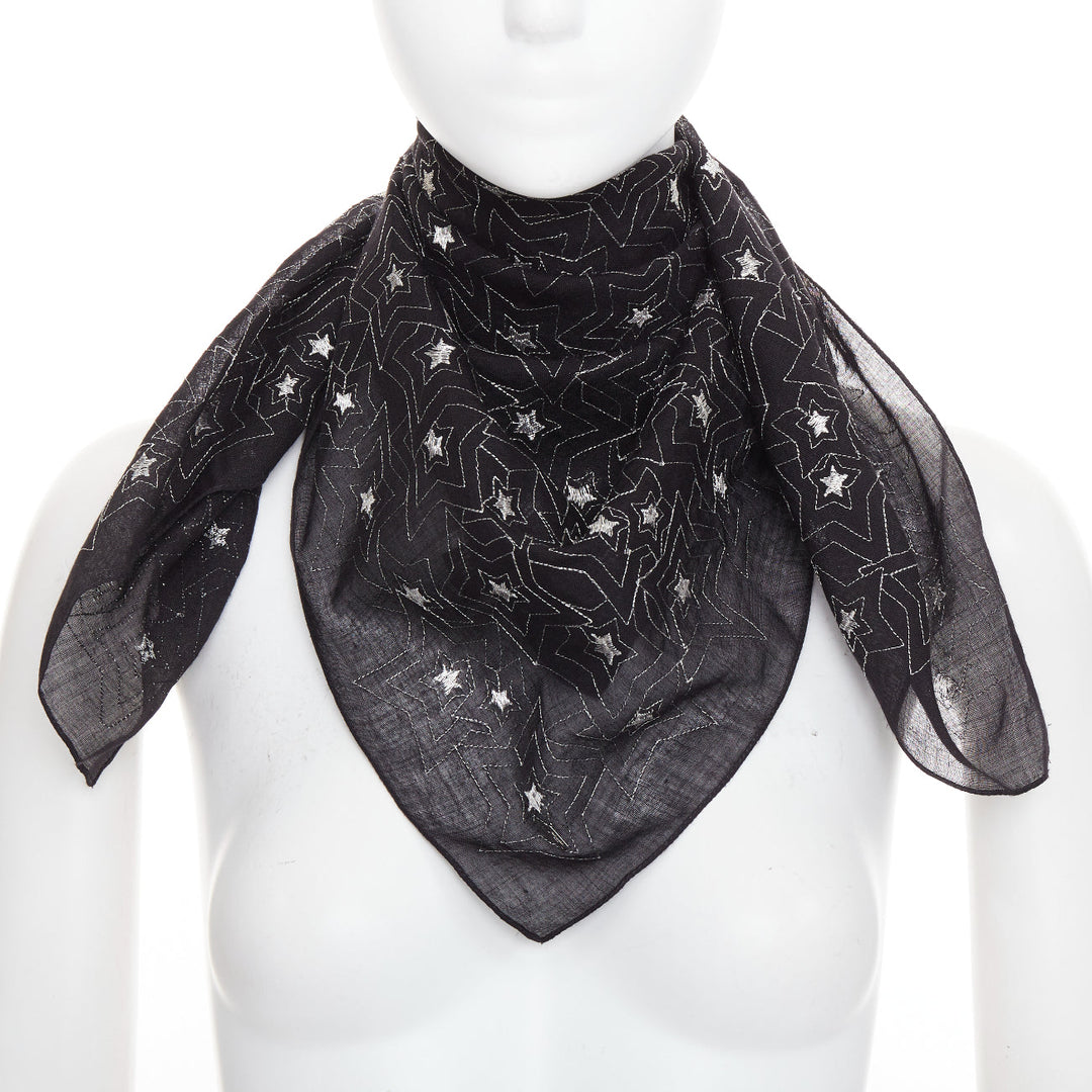 SAINT LAURENT black silver star embroidery lightweight square scarf