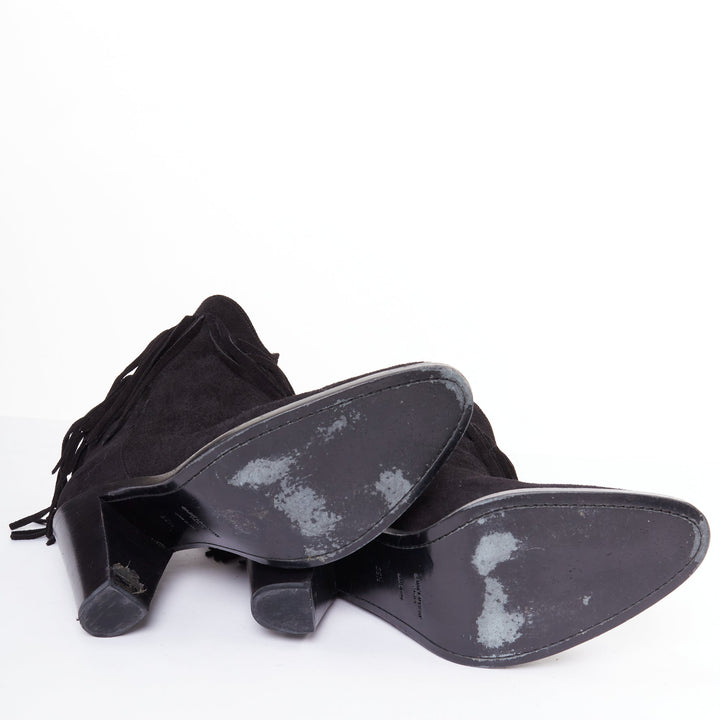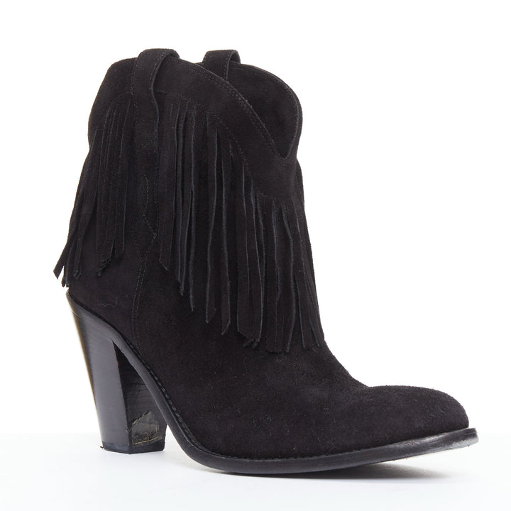 SAINT LAURENT Curtis 80 black suede fringe cuban heel western boots EU39.5