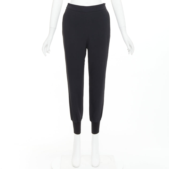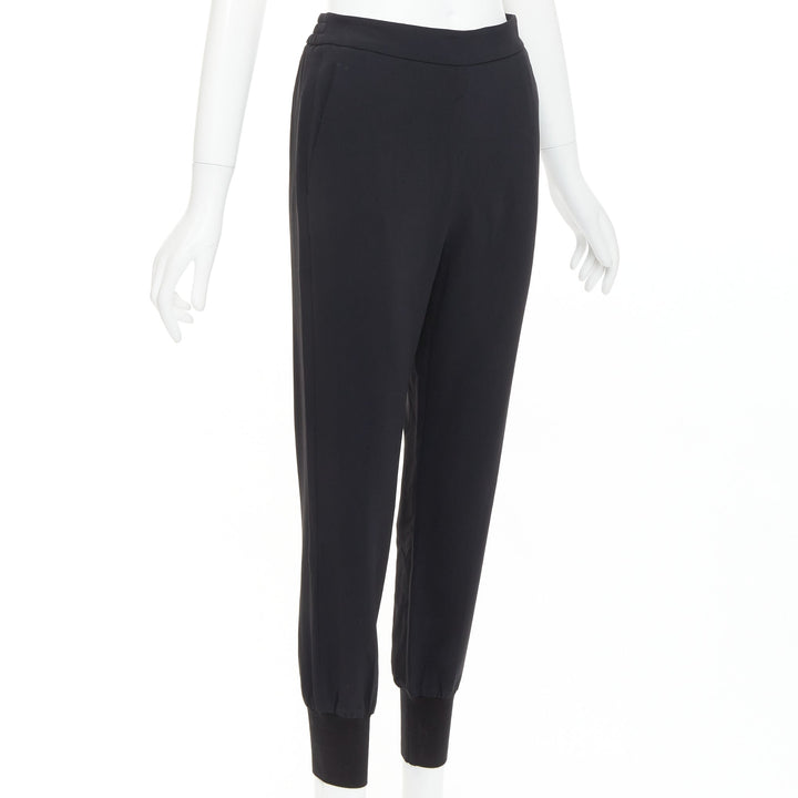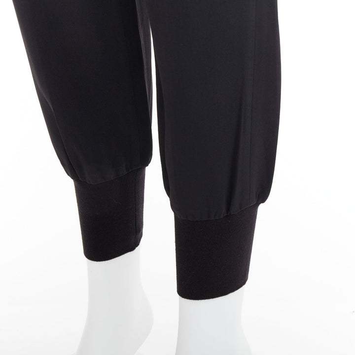 STELLA MCCARTNEY black cotton rib trim ruched back jogger pants IT36 XXS