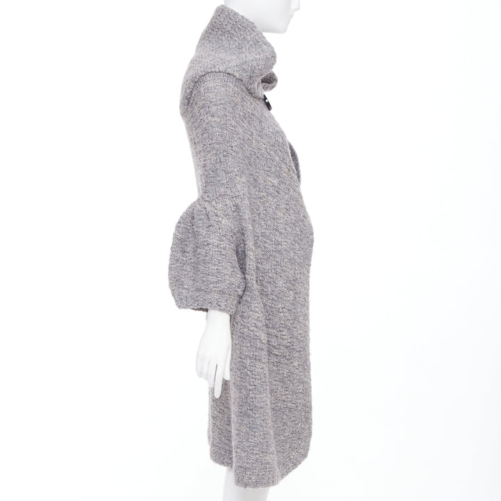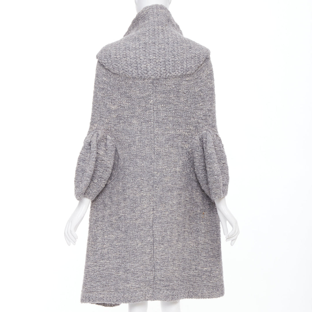 STELLA MCCARTNEY 2009 grey alpaca flax blend chunky knit hooded cardigan IT36 XXS
